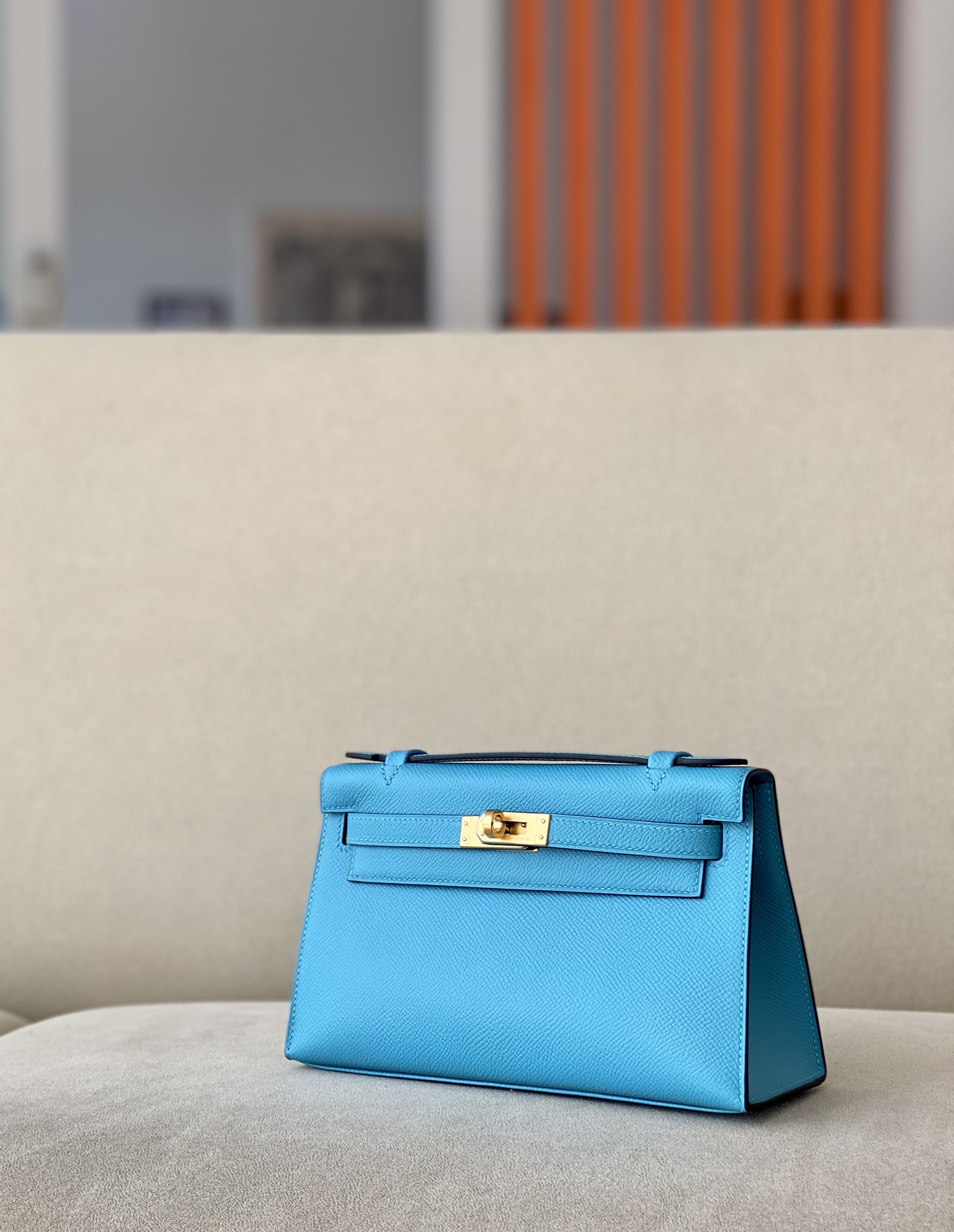 Kelly Pochette Epsom Blue du Nord (P3) Palladium Hardware