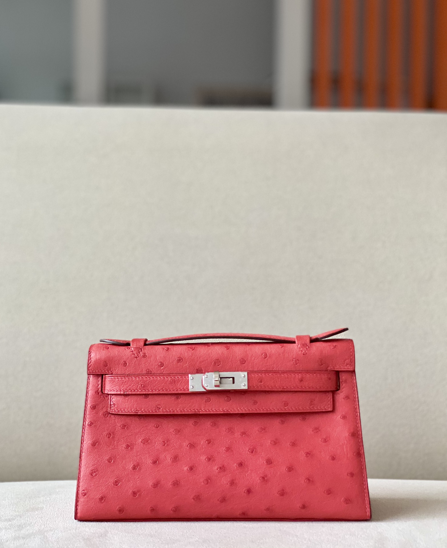Kelly Pochette Ostrich Braise (95) Gold Hardware