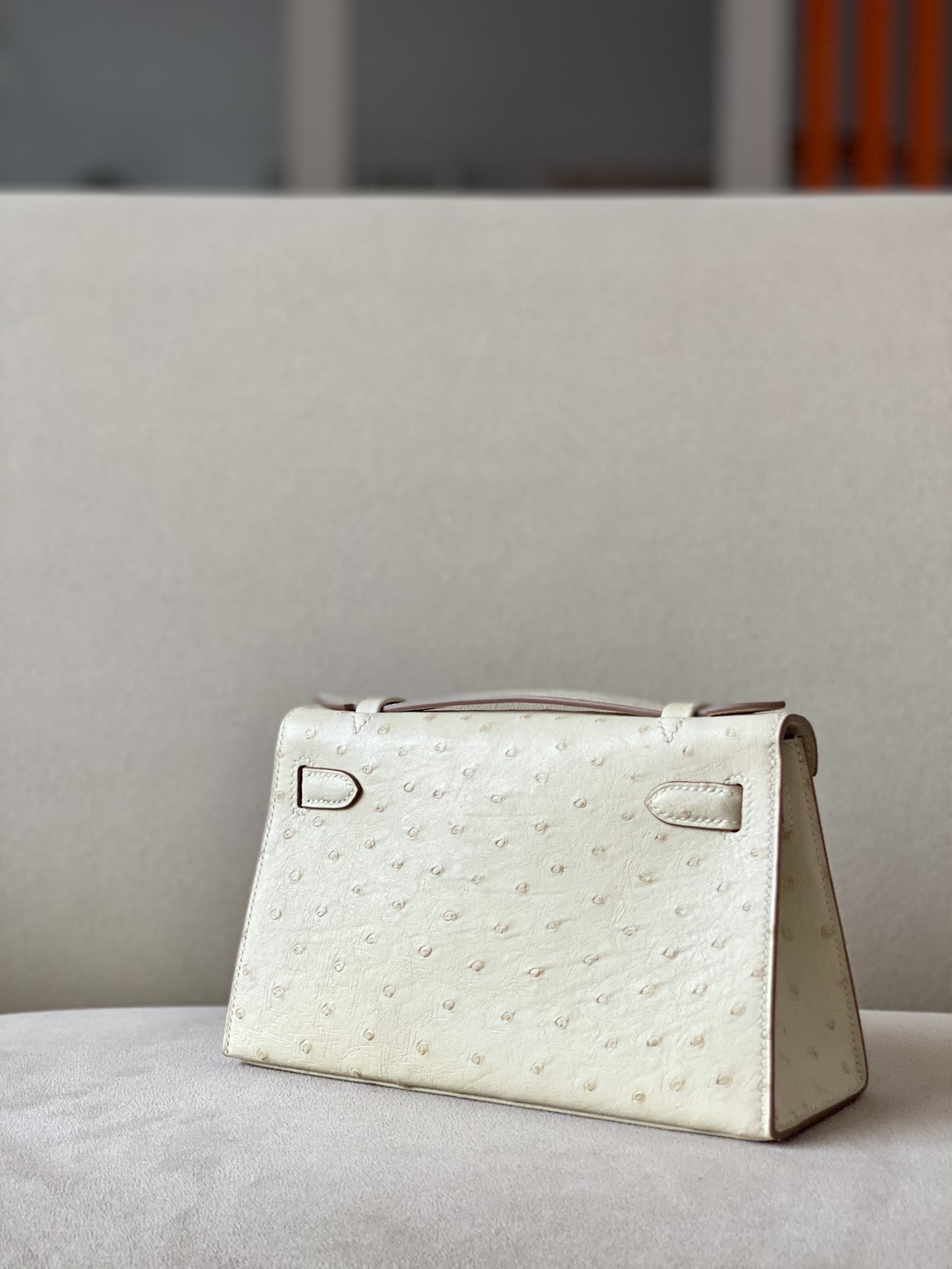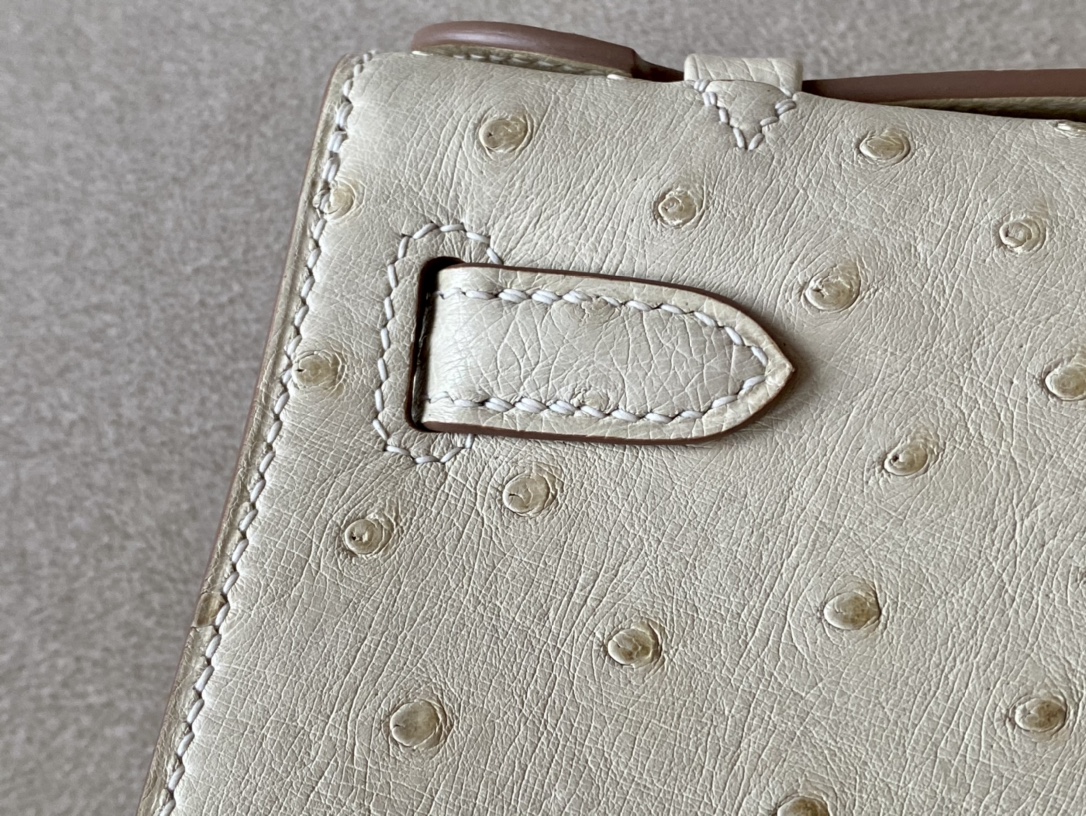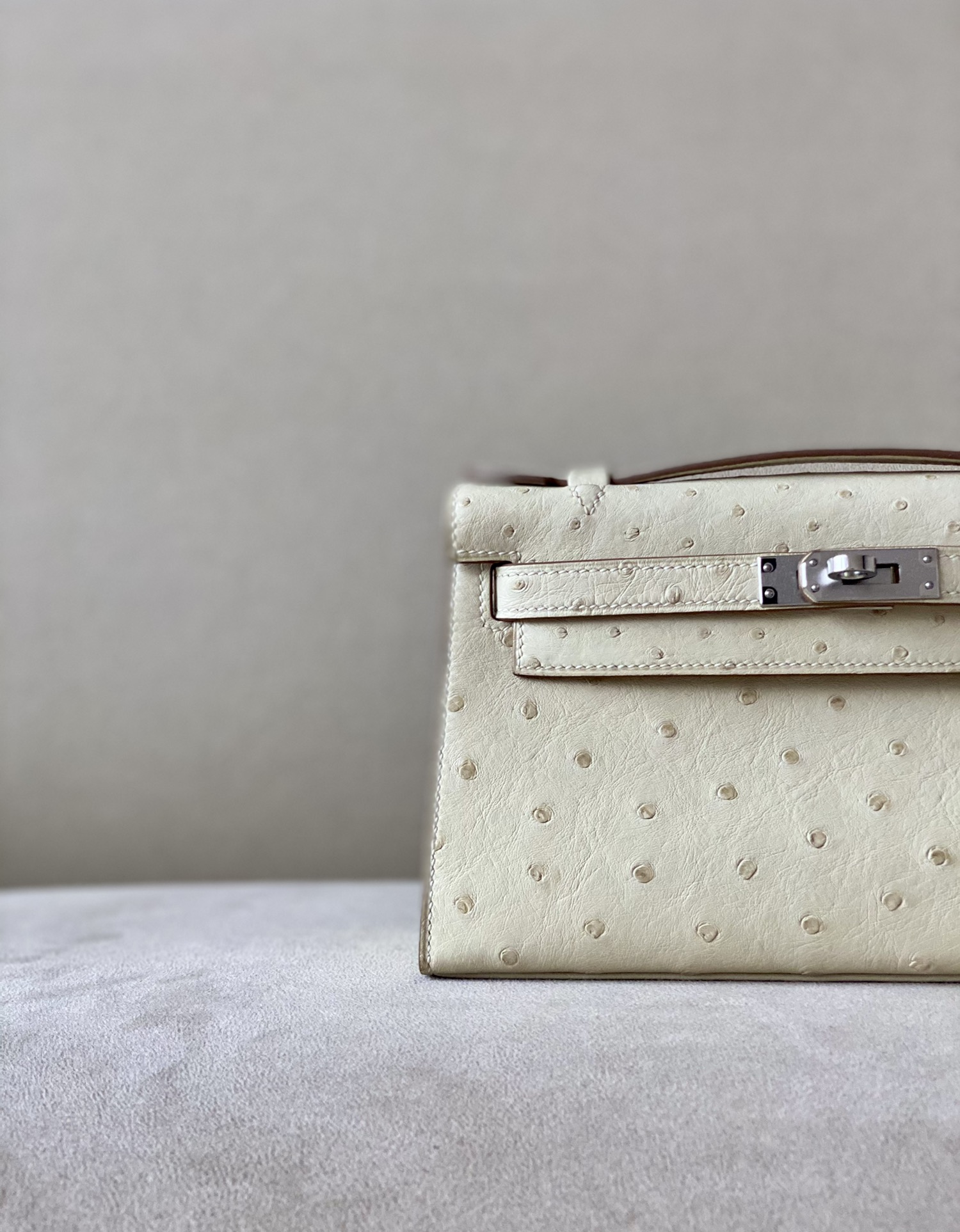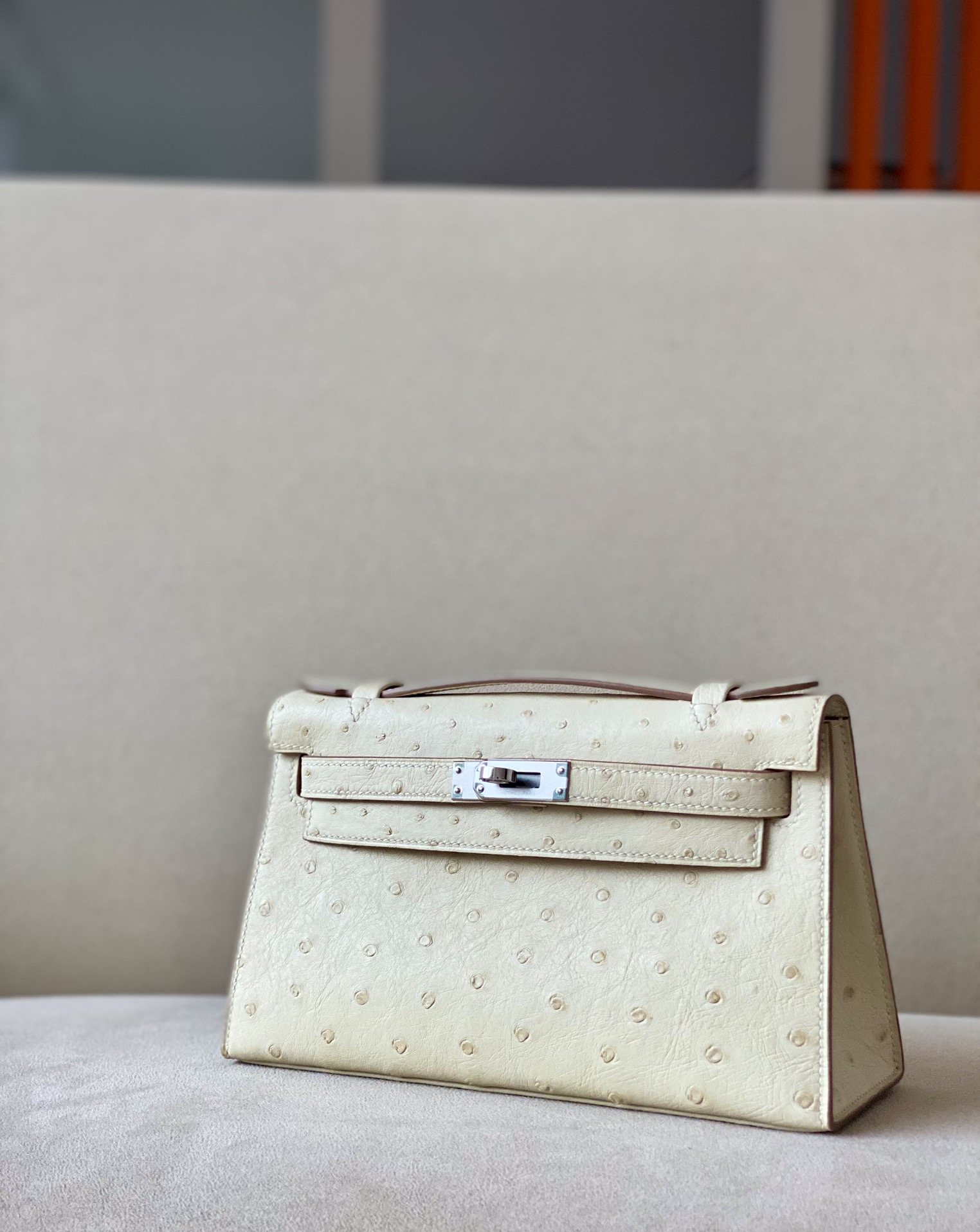 Kelly Pochette Ostrich Parchemin (3C) Gold Hardware