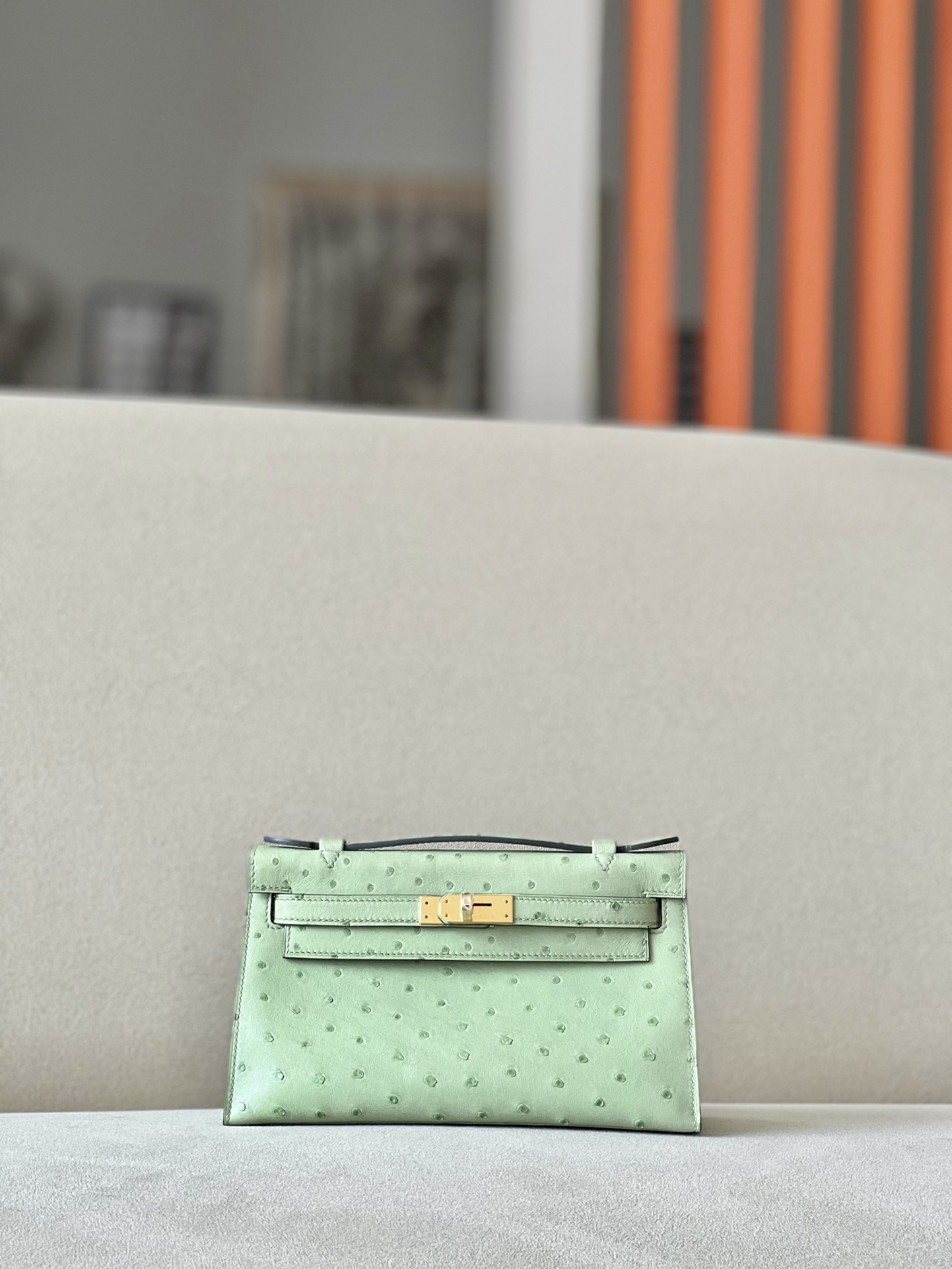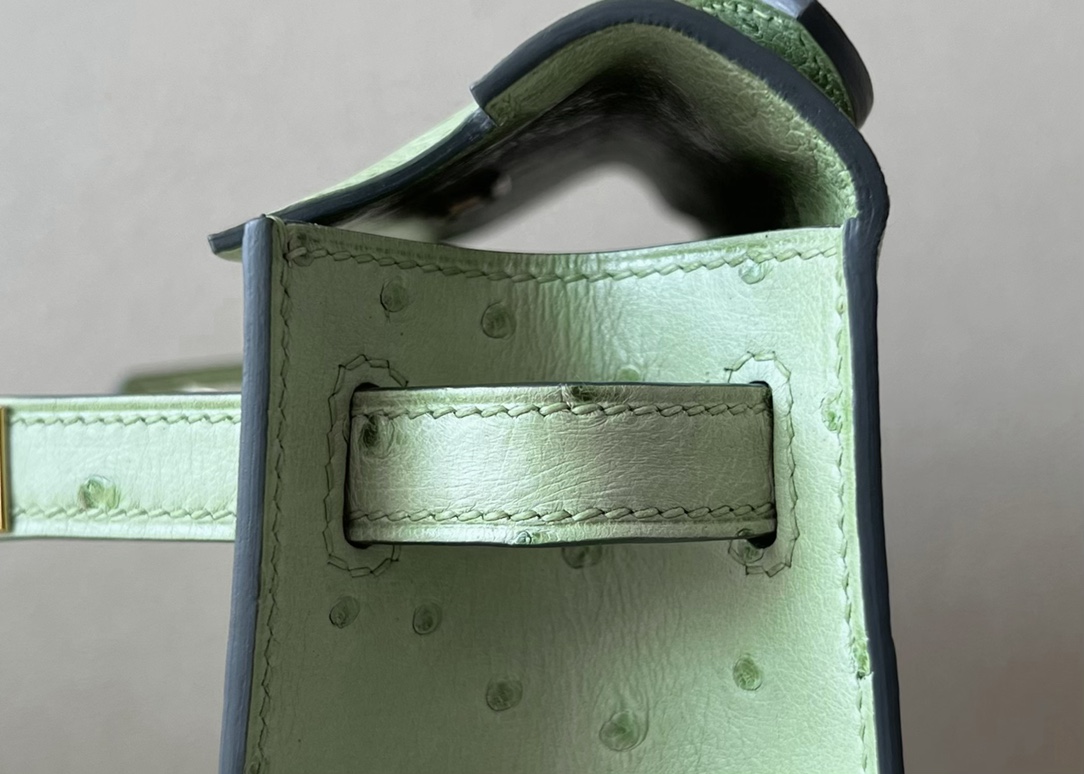 Kelly Pochette Ostrich Vert Vertigo (U4) Gold Hardware