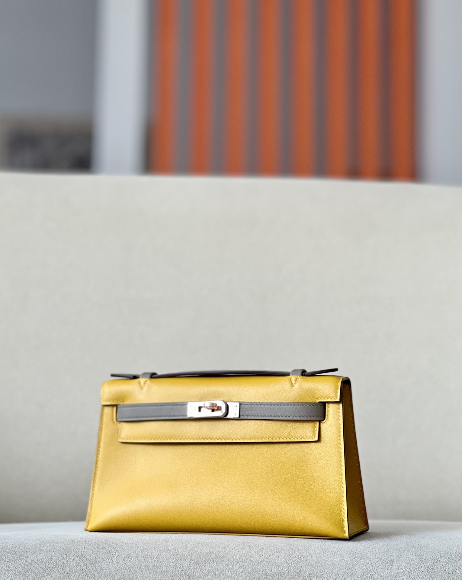 Kelly Pochette HSS Swift Jaune Amber(9D) And Craie(10)Palladium Hardware