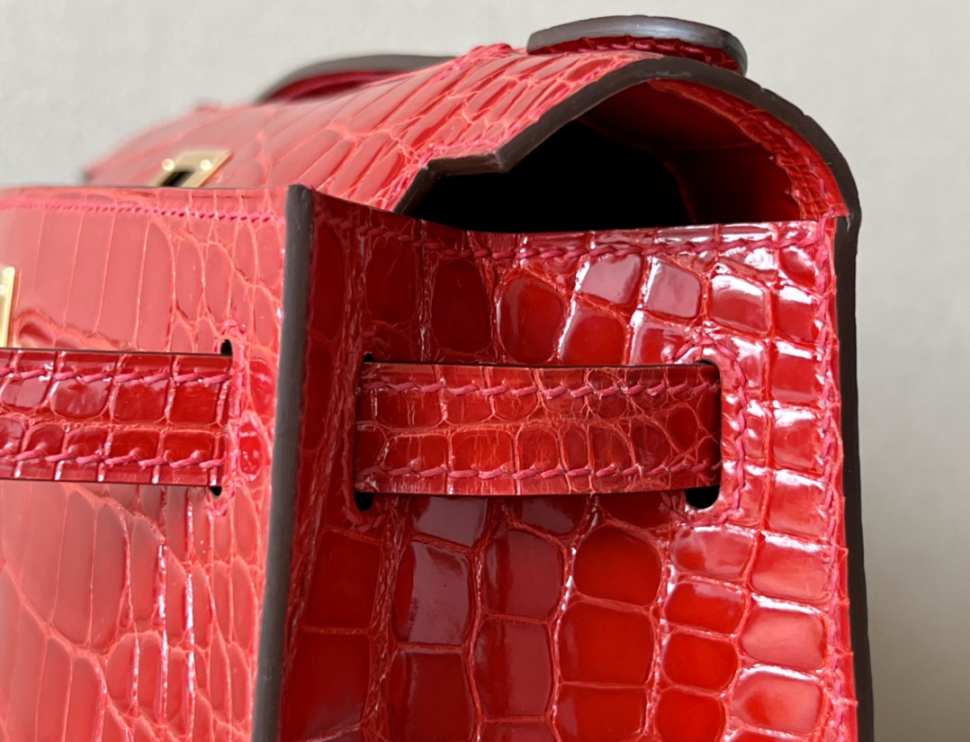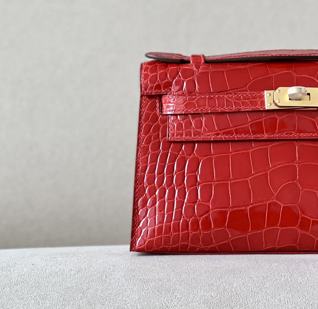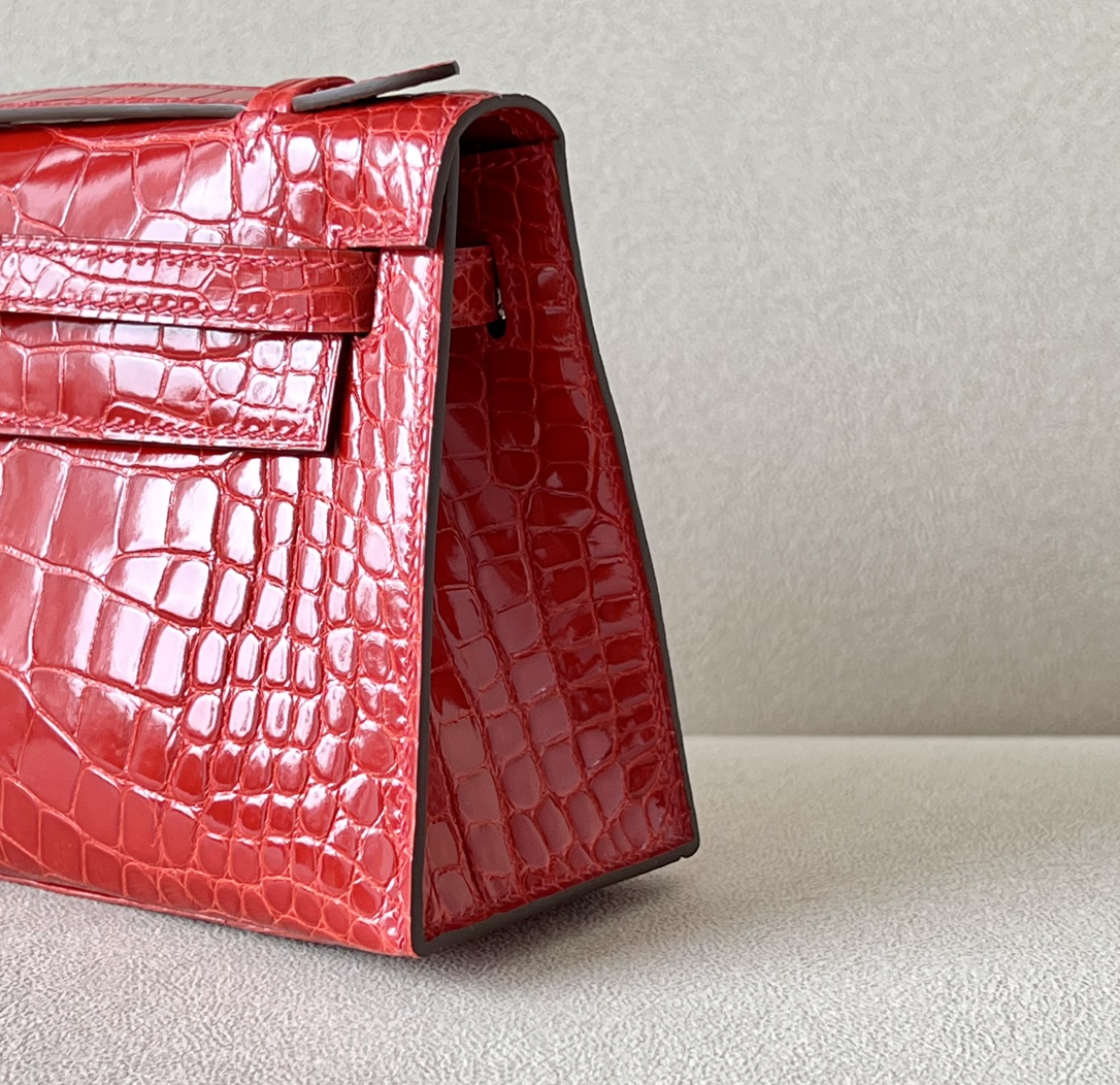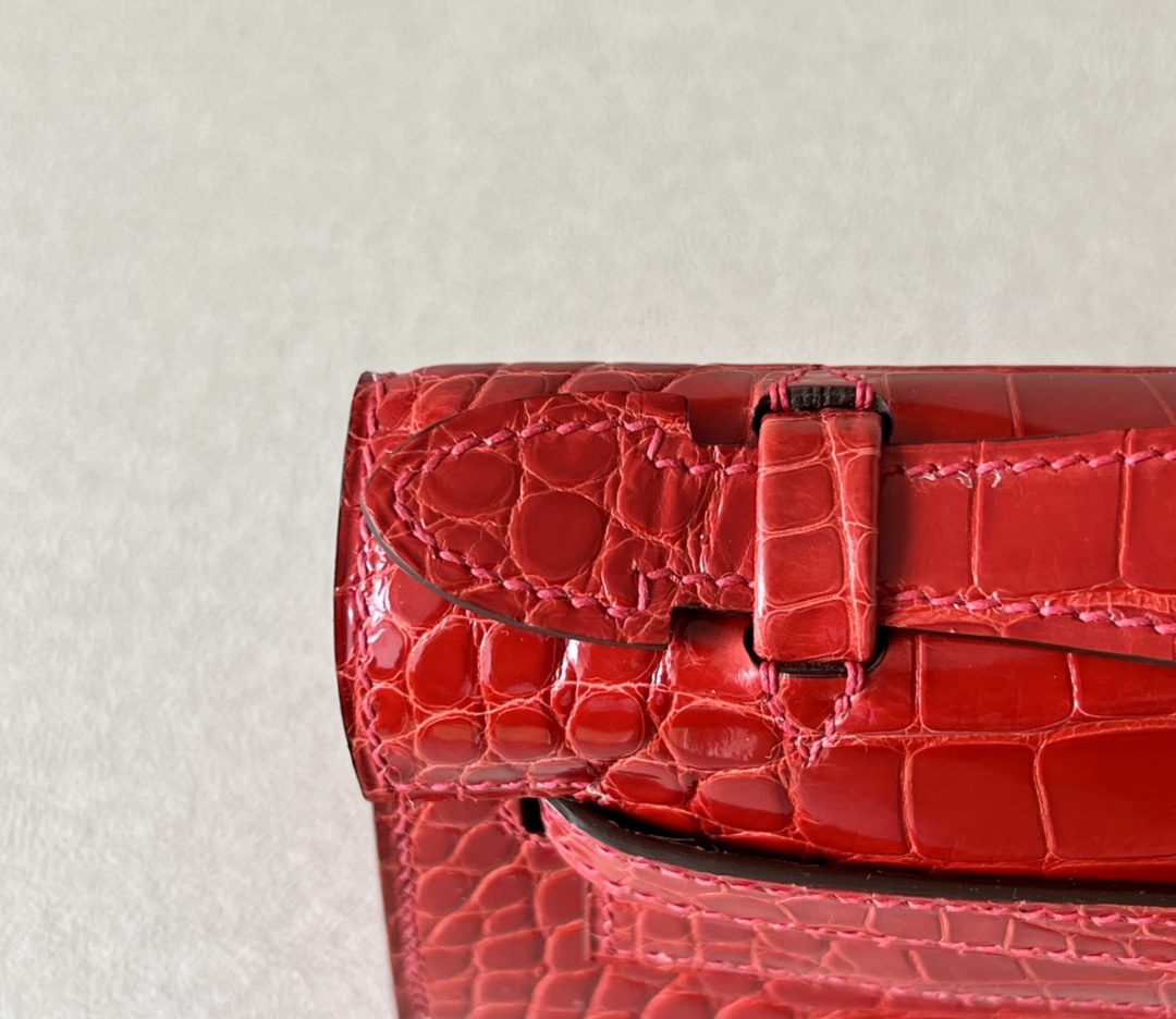 Kelly Pochette Alligator Braise (95) Palladium Hardware