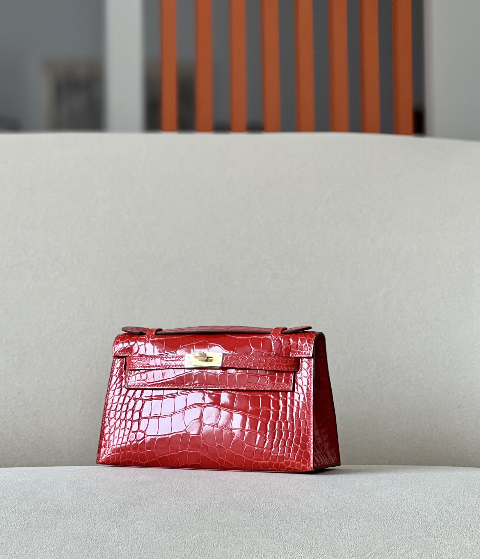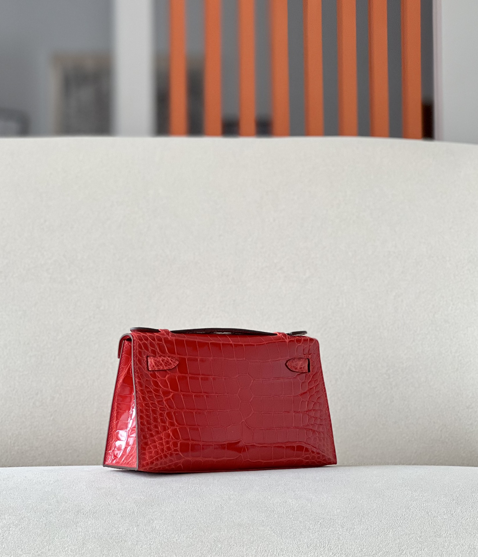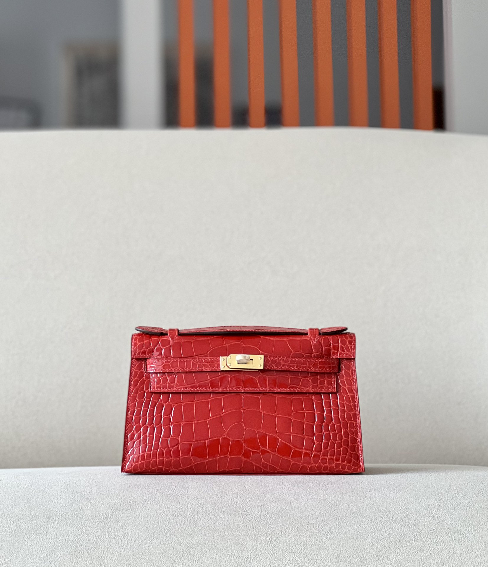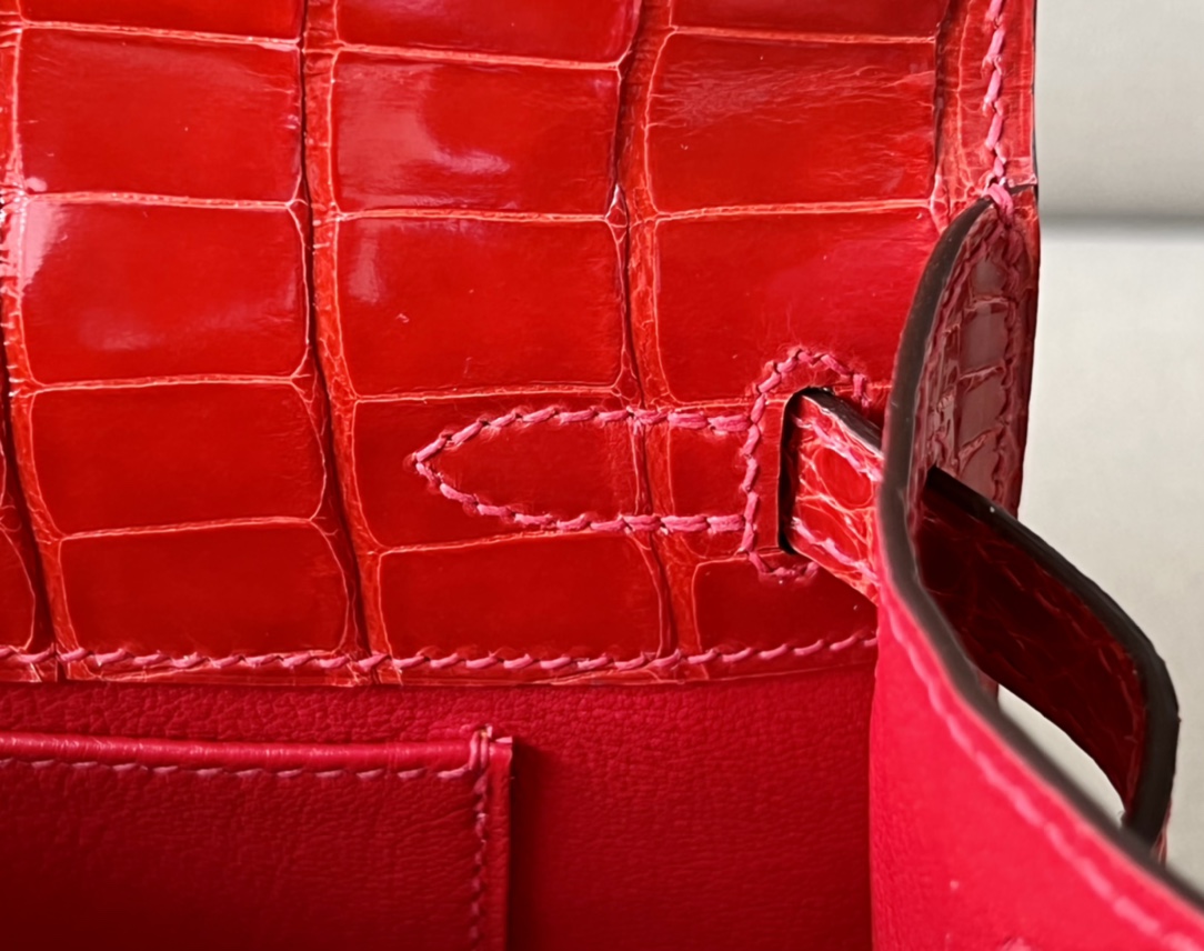 Kelly Pochette Alligator Braise (95) Palladium Hardware