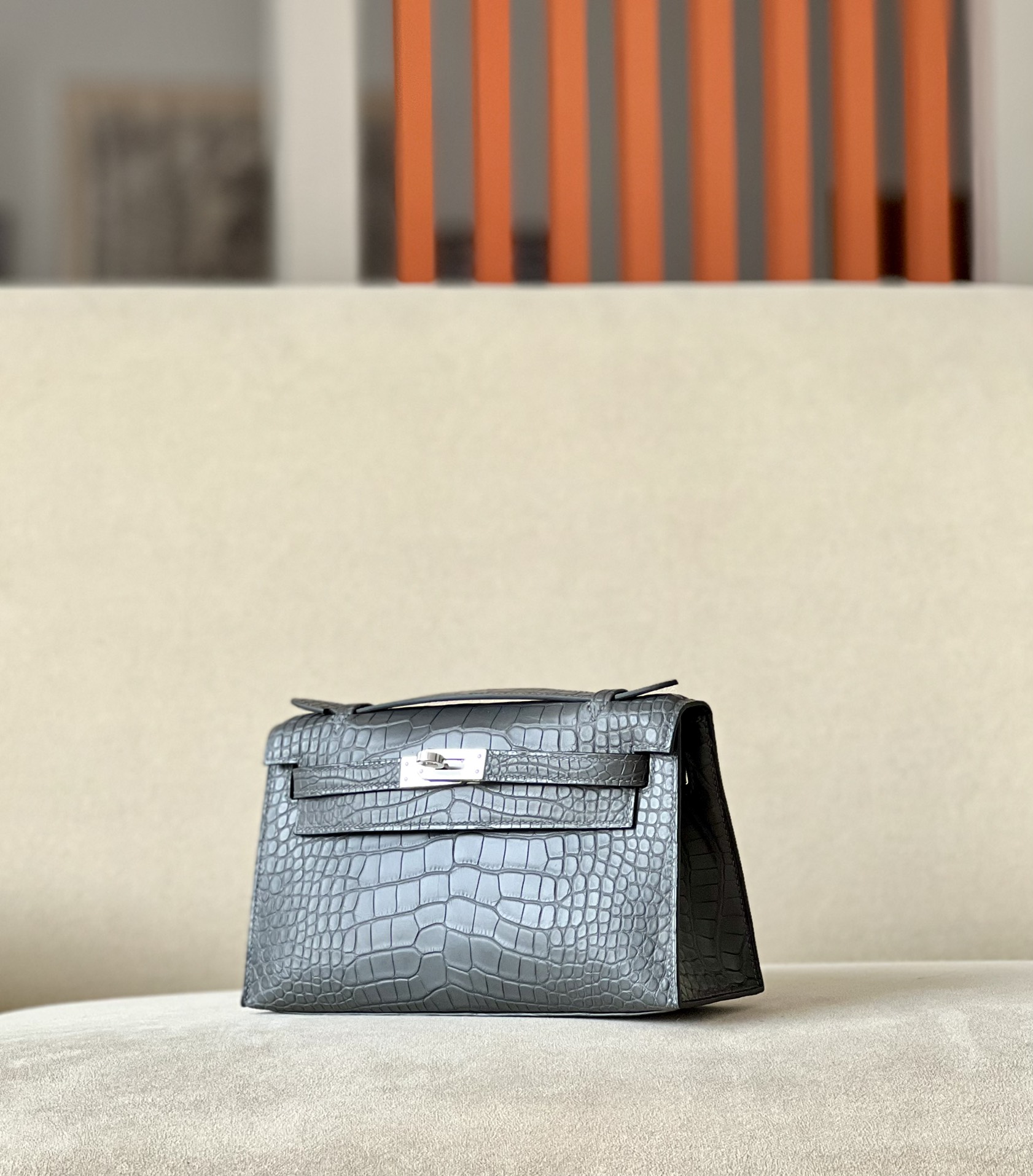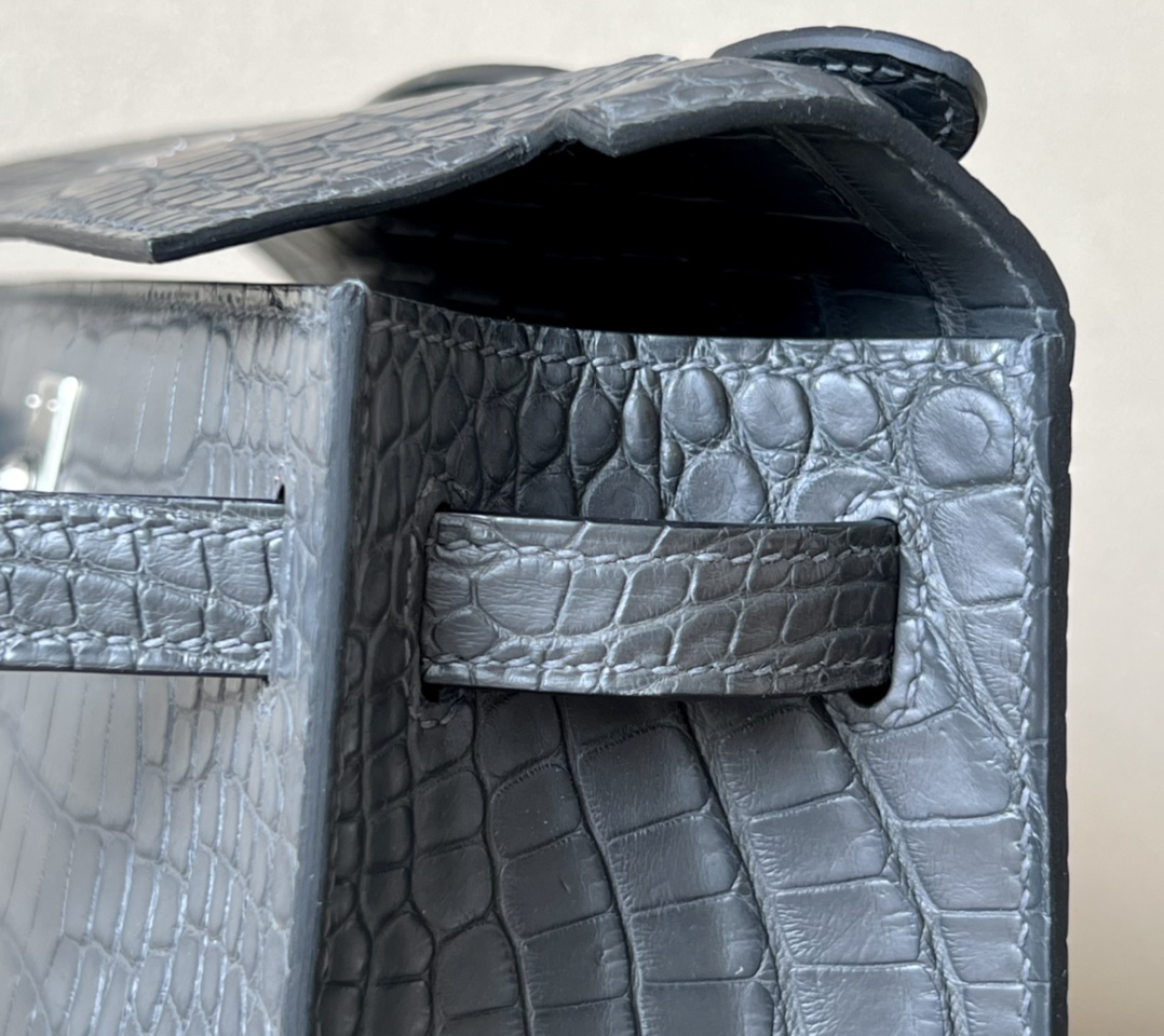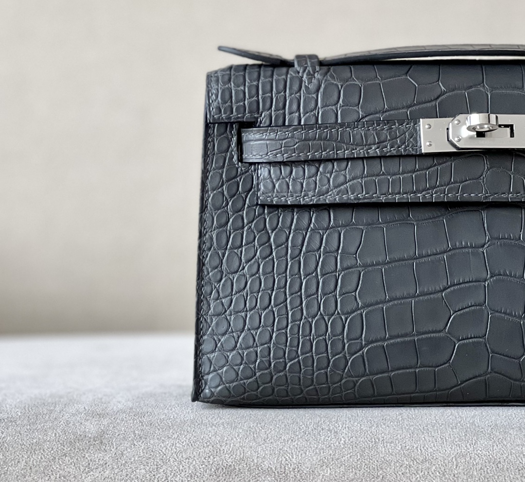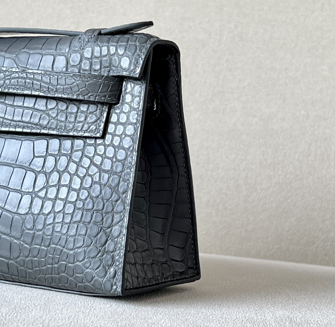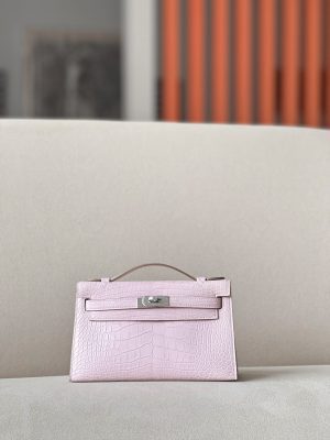Kelly Pochette Matte Alligator Mauve Pale (09) Palladium Hardware
