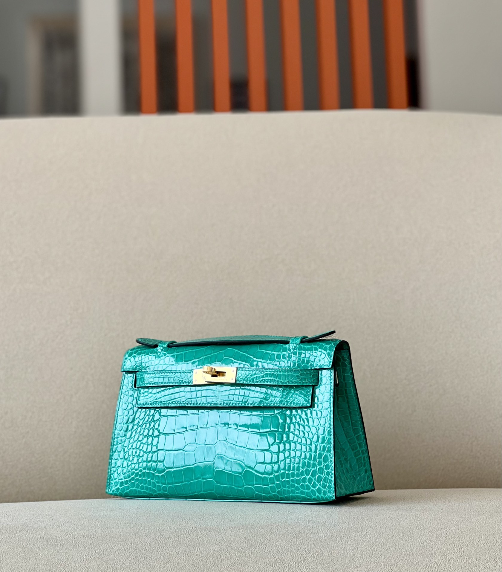 Kelly Pochette Alligator Nior (89) Palladium Hardware