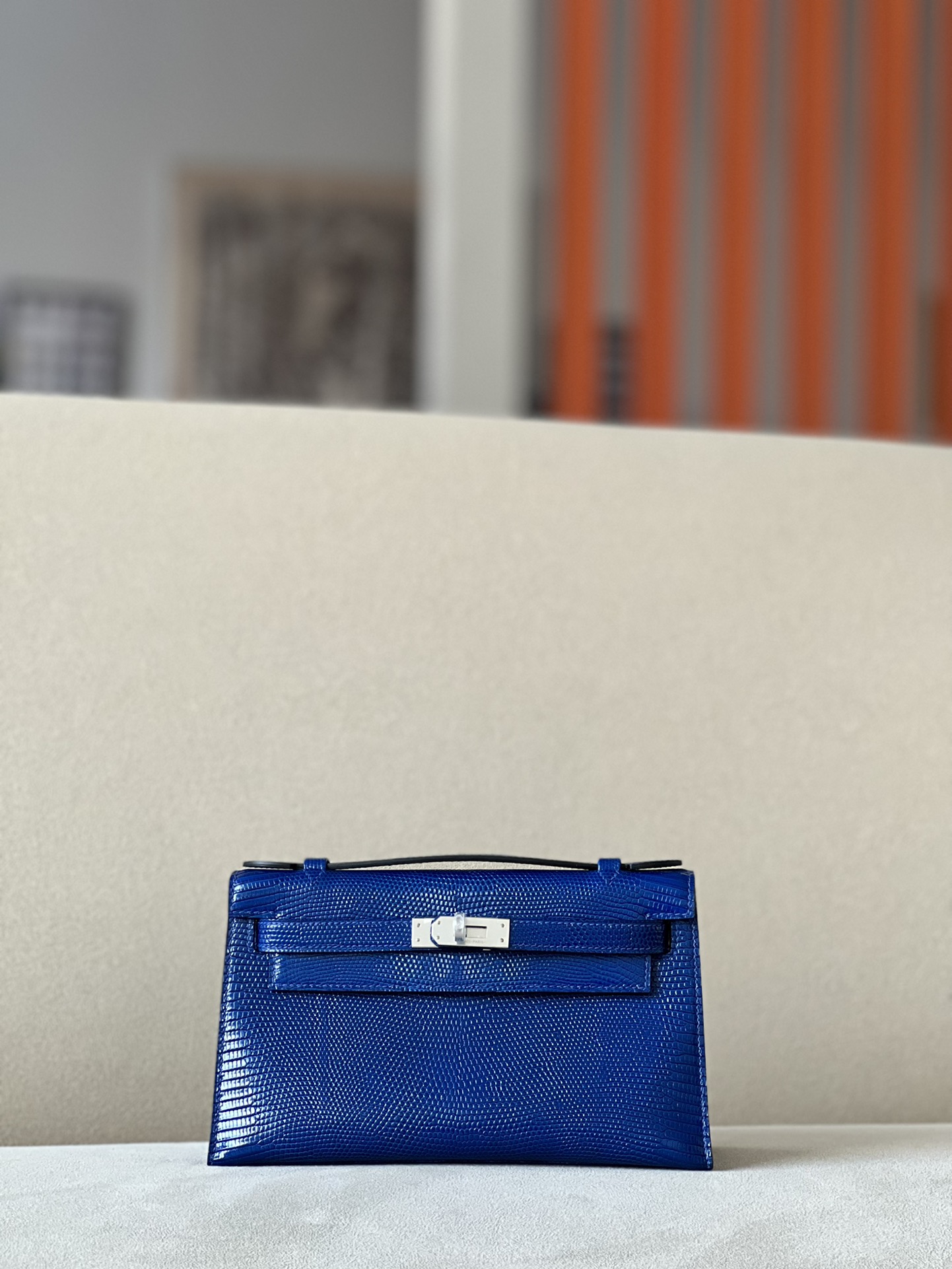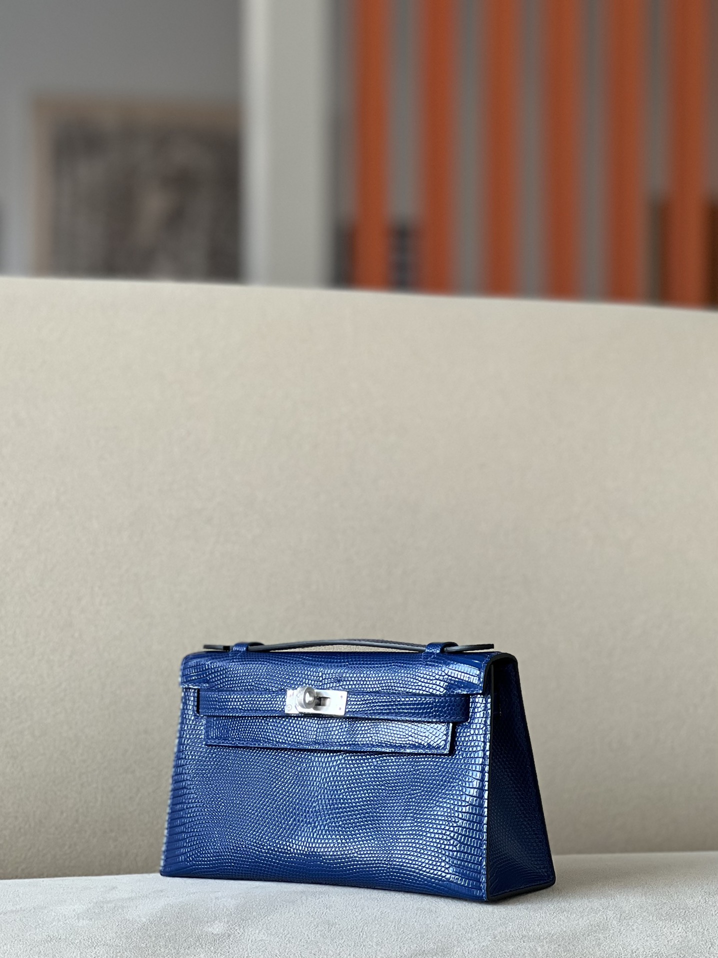 Kelly Pochette Lizard Ficelle (17) Palladium Hardware