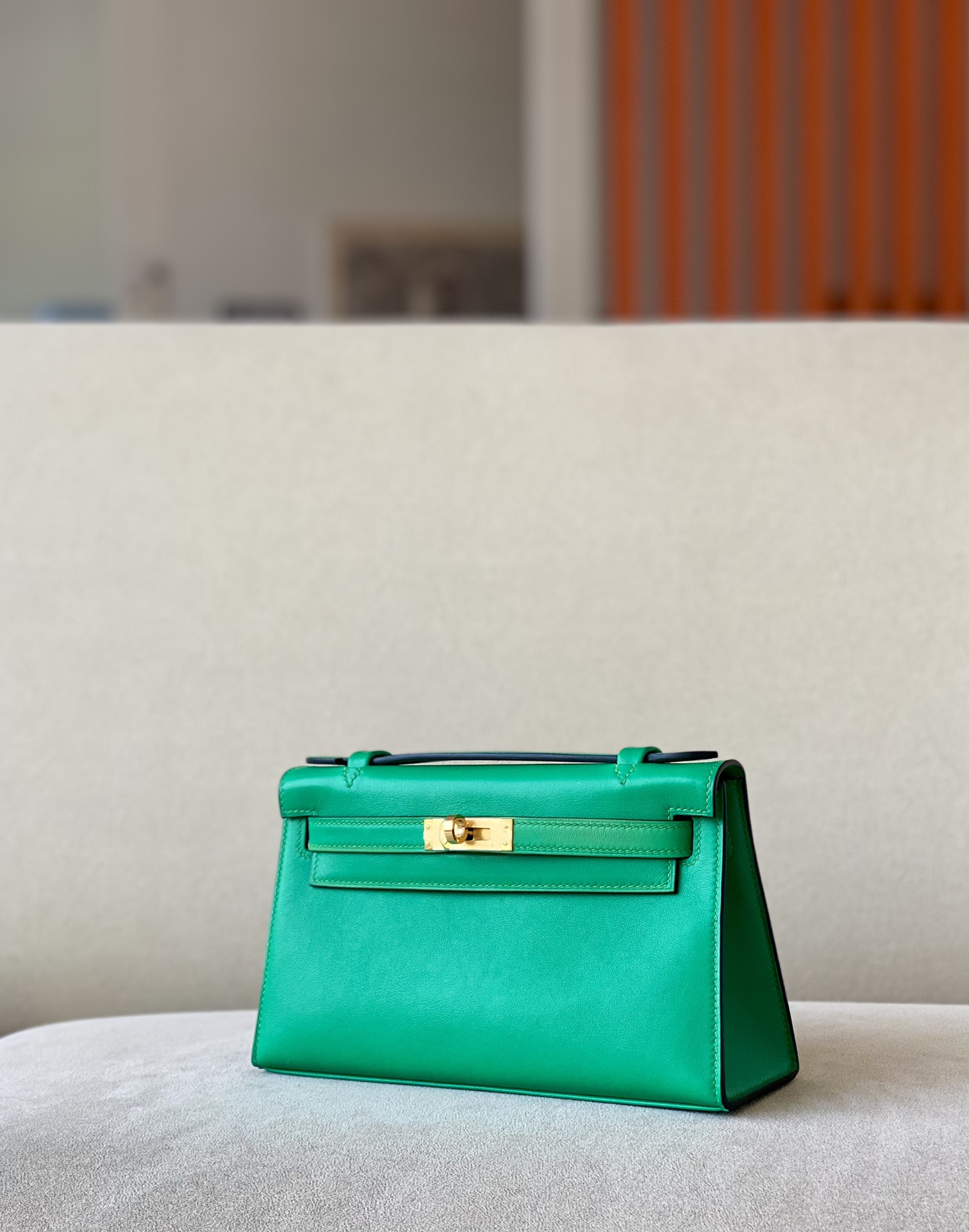 Kelly Pochette Swift Biscuit (4B) Gold Hardware