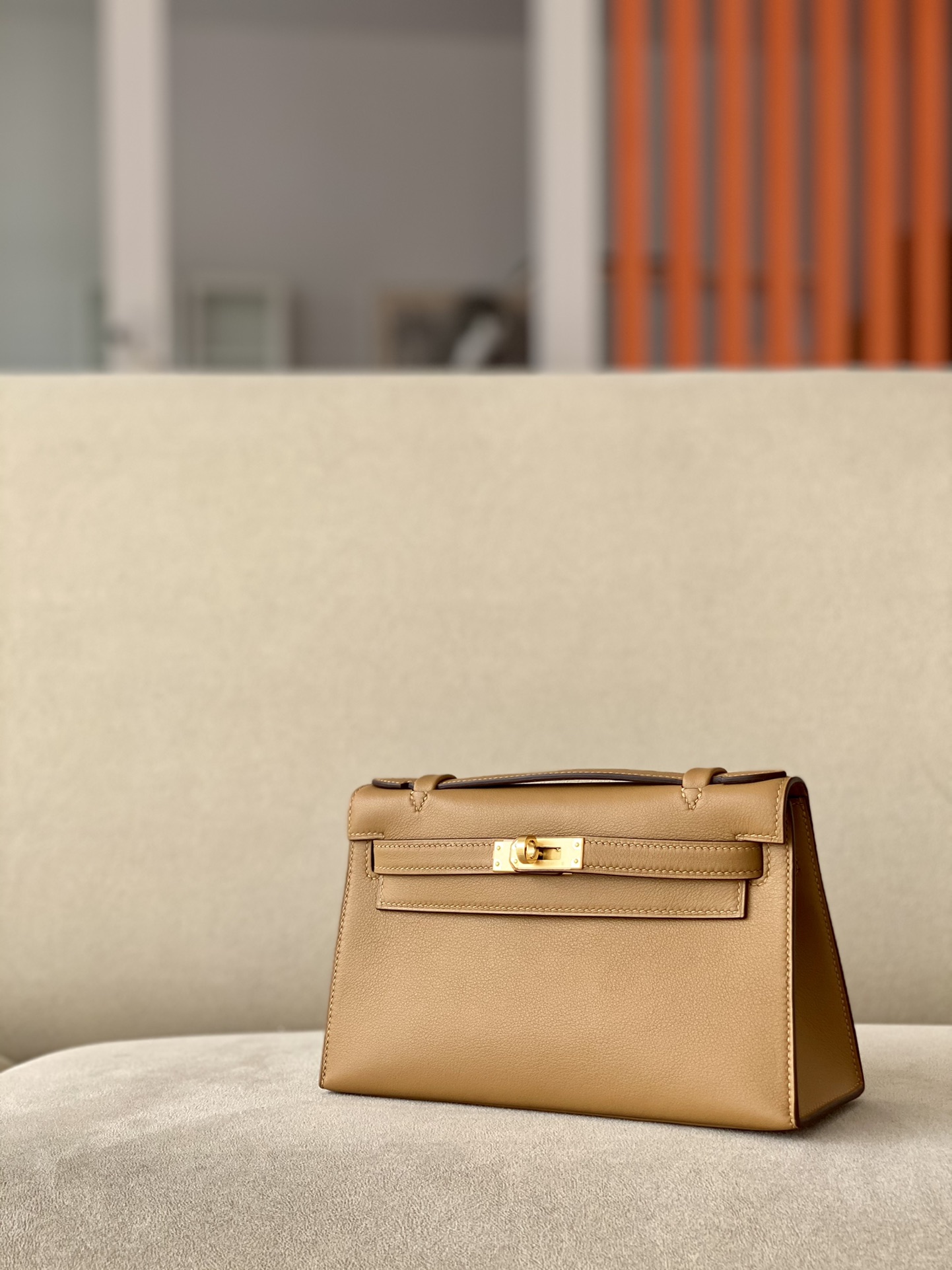 Kelly Pochette Swift Biscuit (4B) Palladium Hardware
