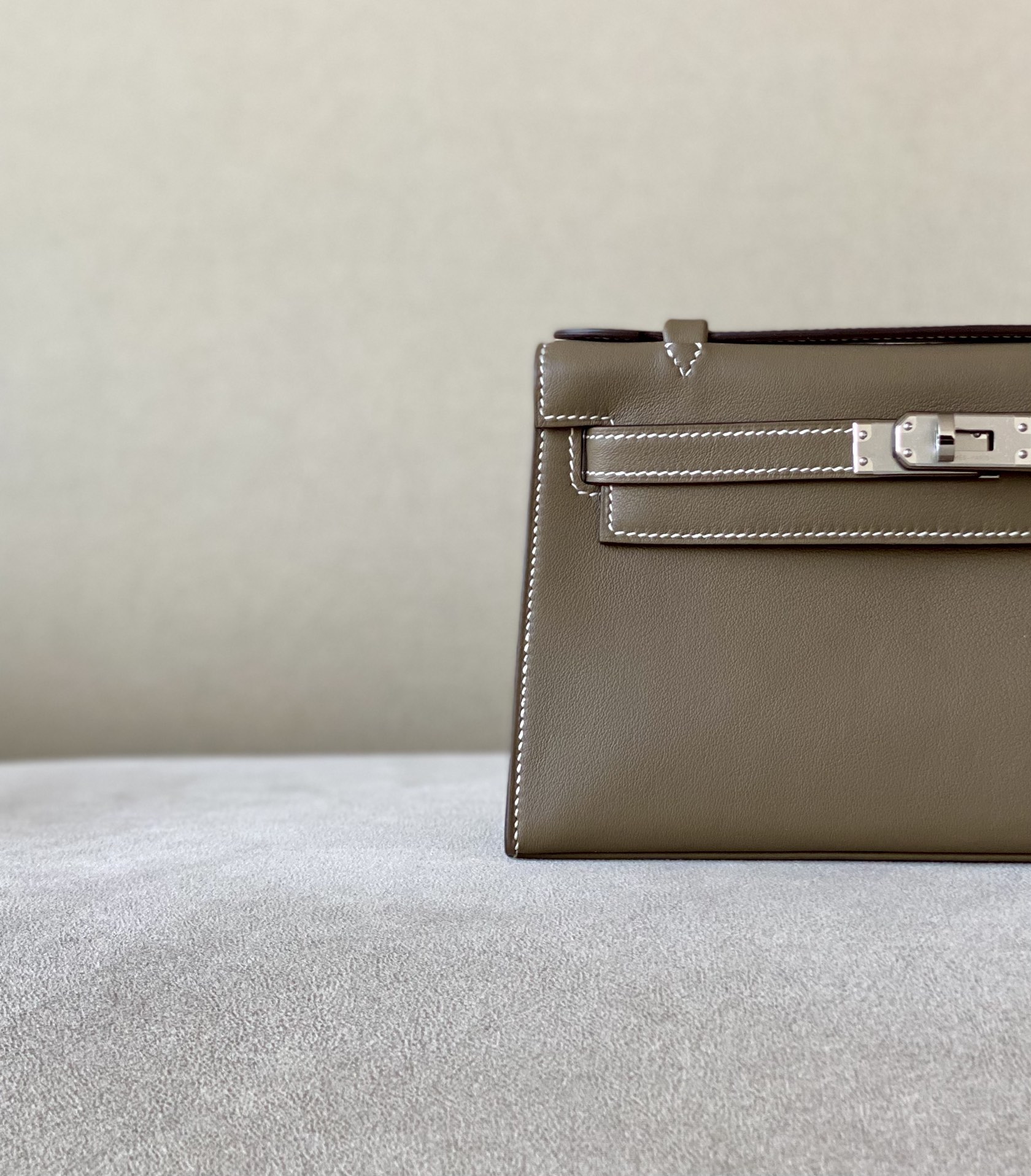 Kelly Pochette Swift Etoupe (18) Gold Hardware