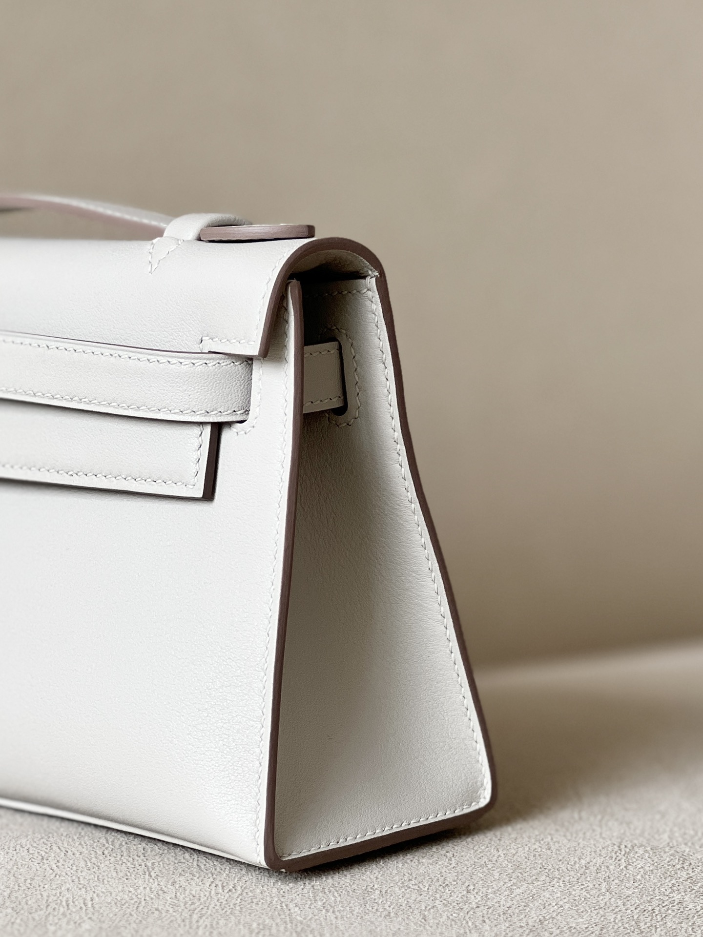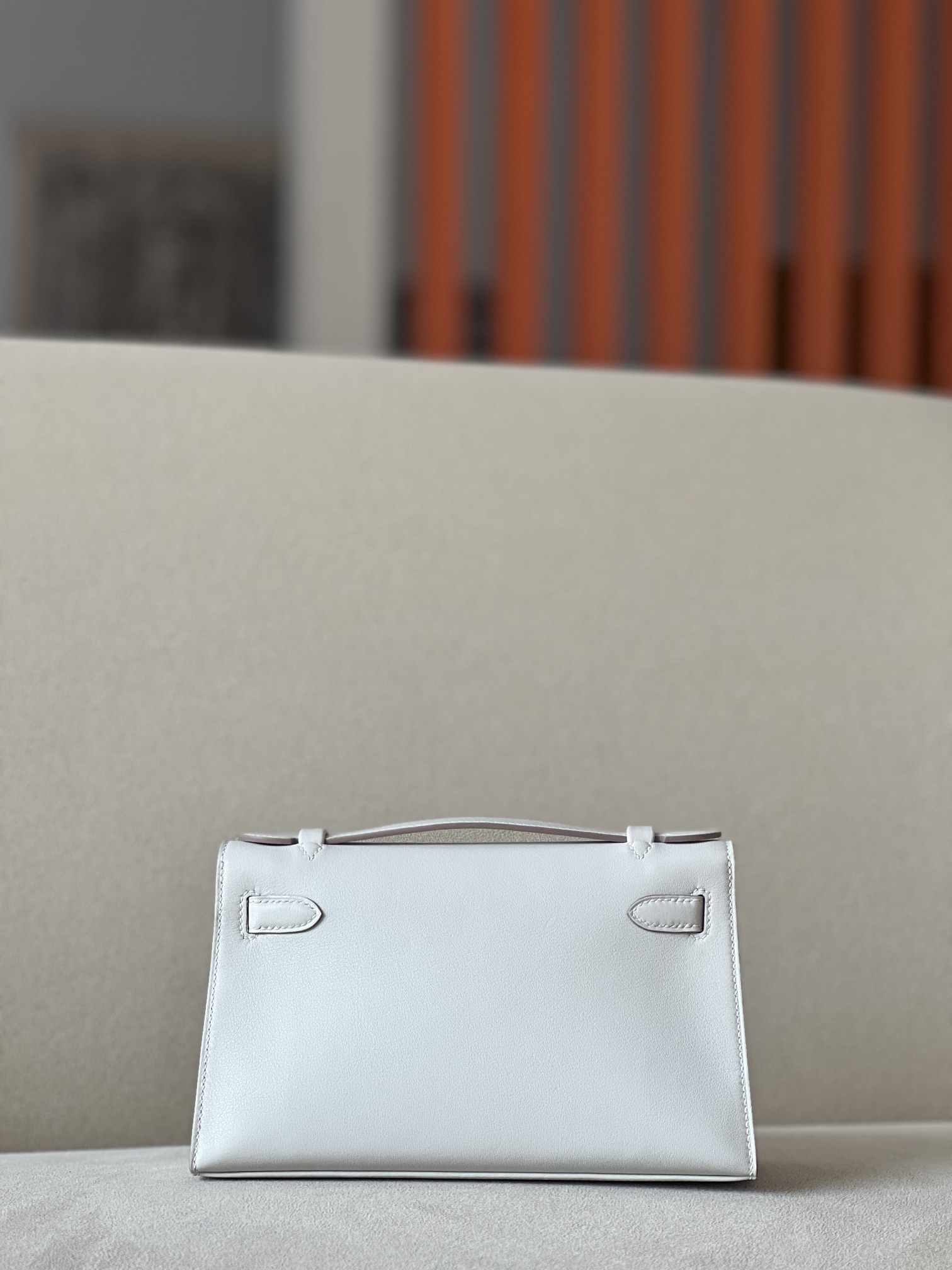 Kelly Pochette Swift Gris Perle (80) Palladium Hardware