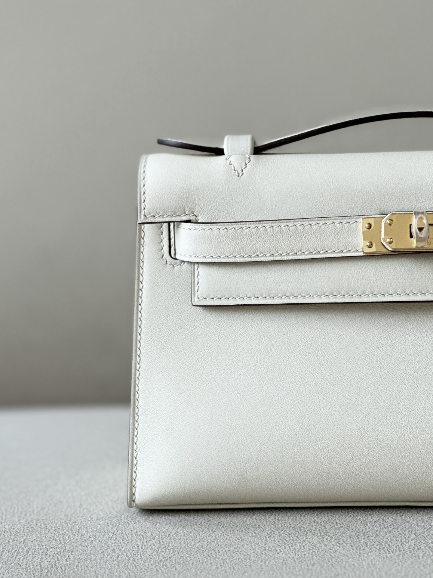 Kelly Pochette Swift Nata (I2) Palladium Hardware