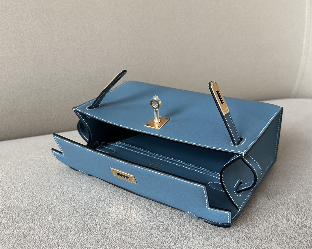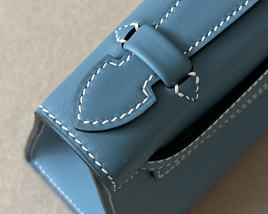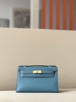 Kelly Pochette Swift New Bleu Jean (D2) Palladium Hardware