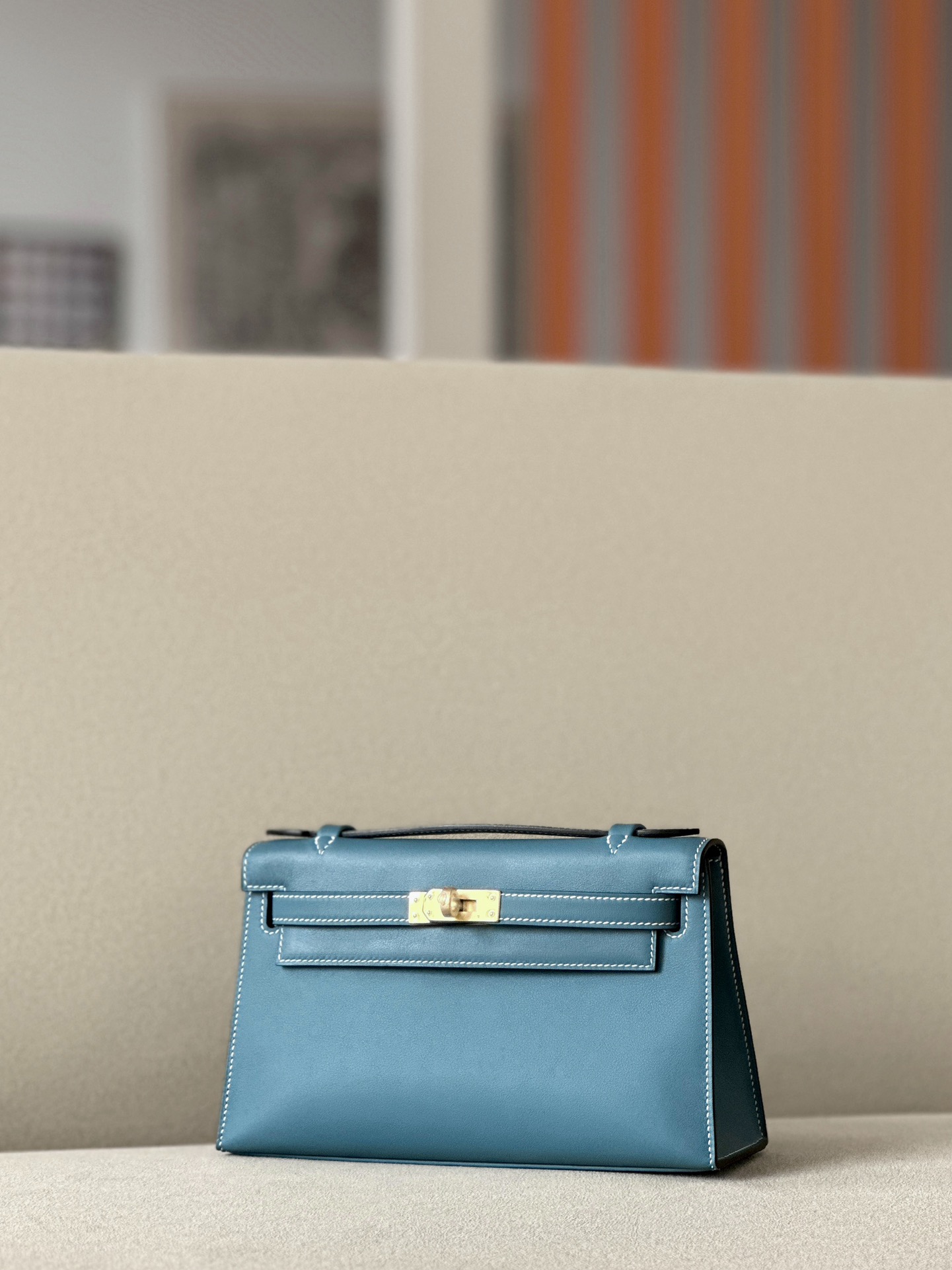 Kelly Pochette Swift Craie (10) Gold Hardware