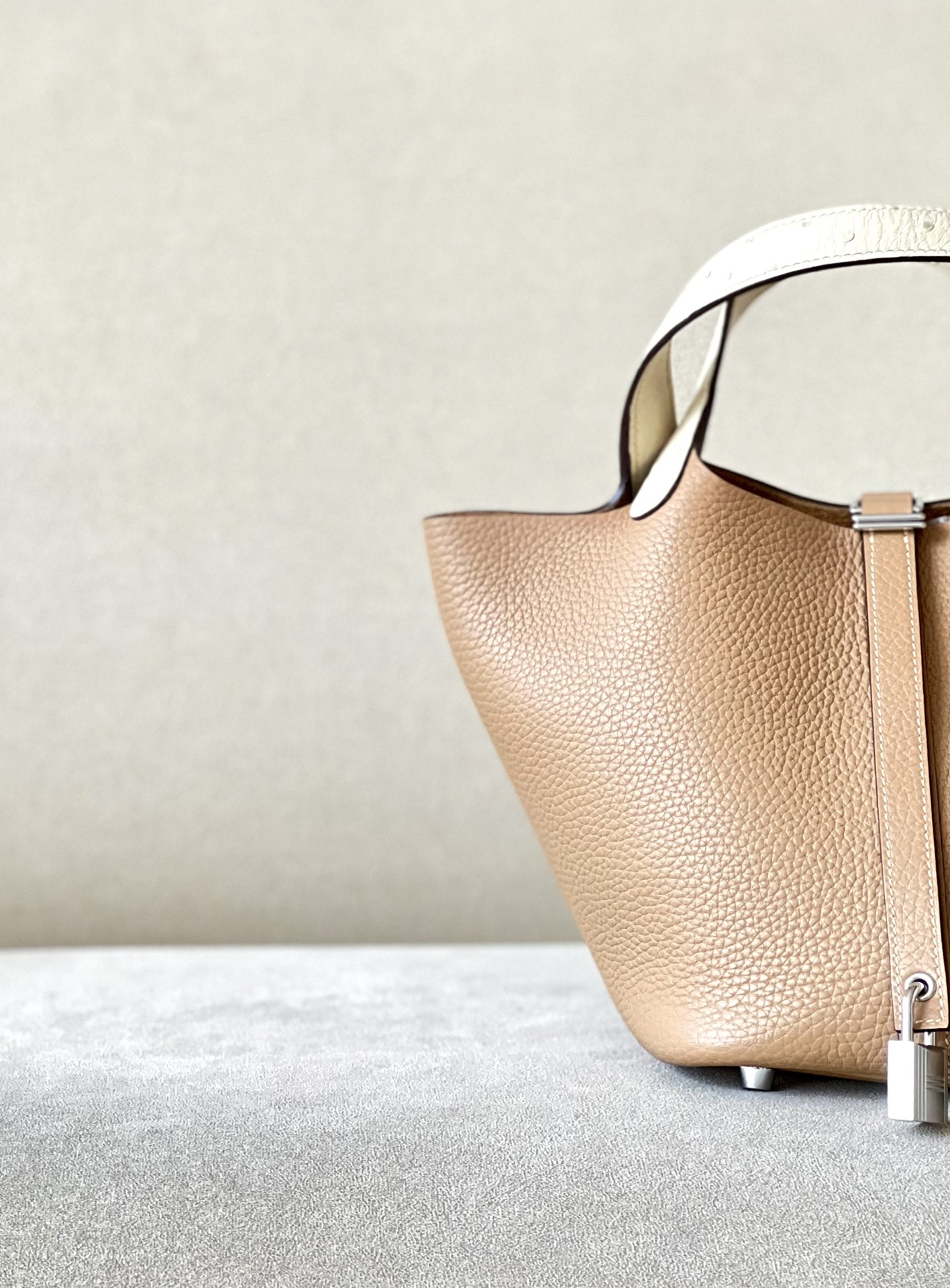 Picotin Lock 18 Clemence and Ostrich Nata(I2) and Jaune Poussin(1Z) Palladium Hardware