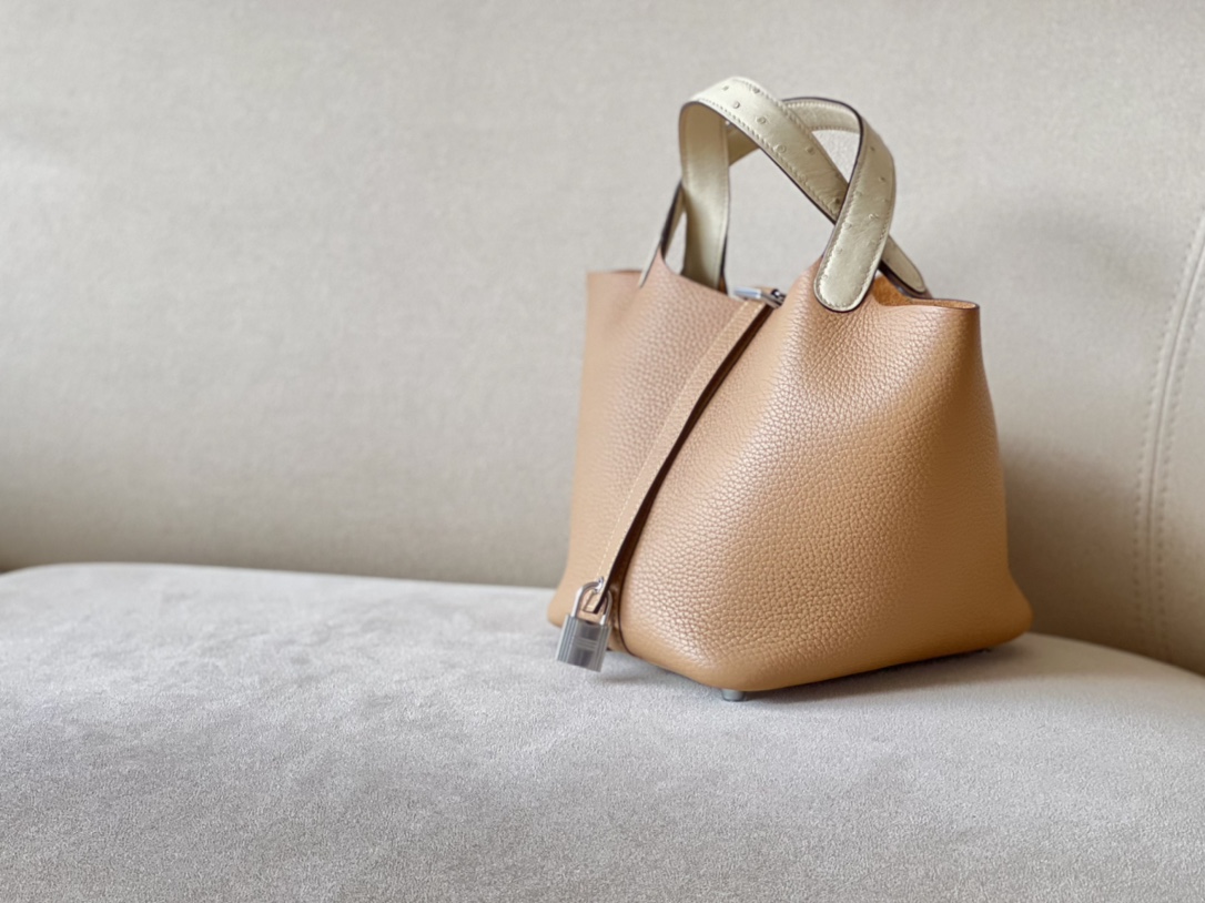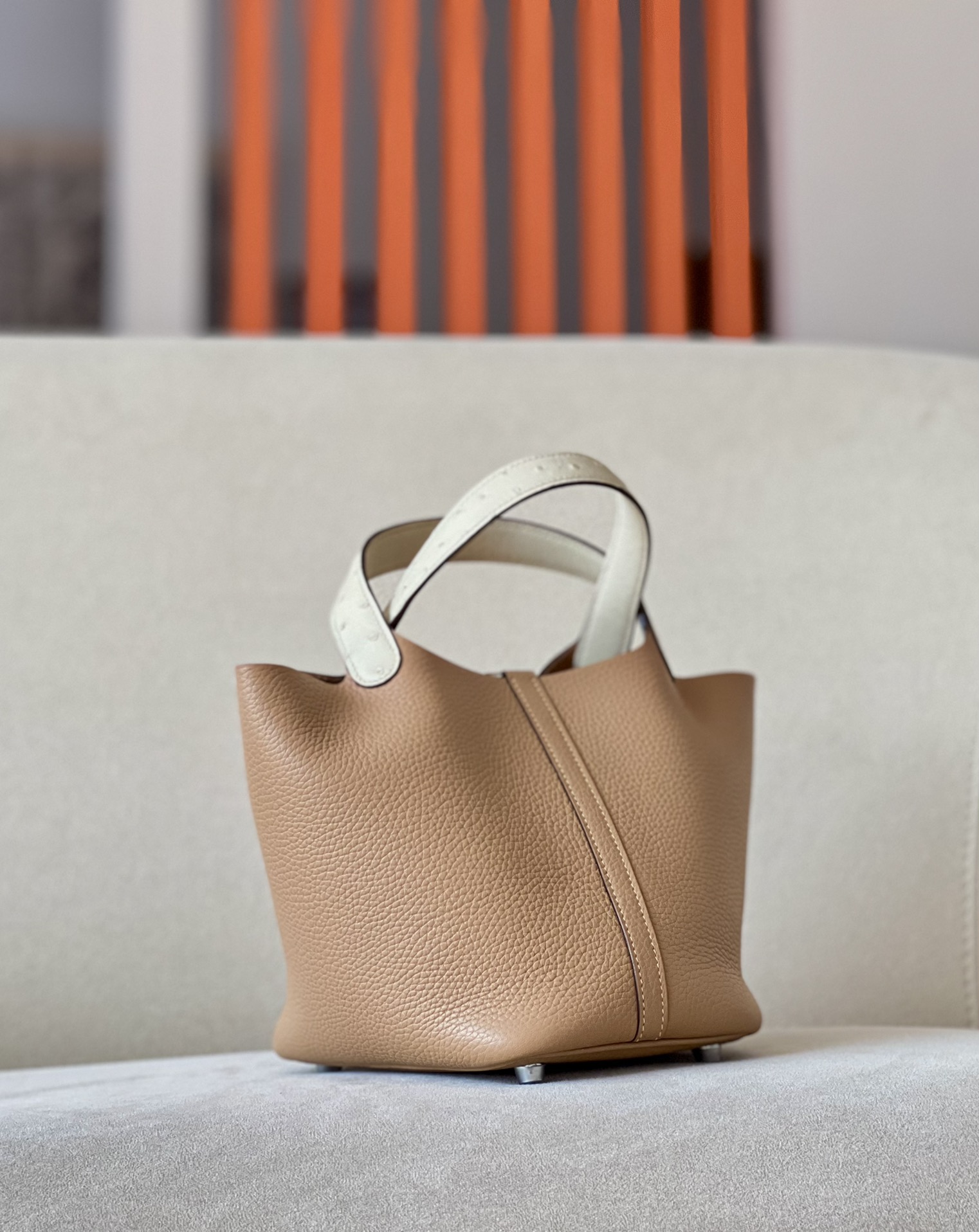 Picotin Lock 18 Clemence and Ostrich Gris Meyer(0L) and Vanille(Y1) Palladium Hardware