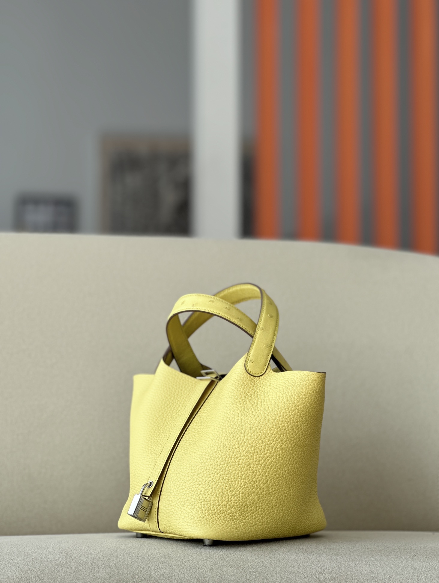 Picotin Lock 18 Clemence and Ostrich Gris Meyer(0L) Palladium Hardware
