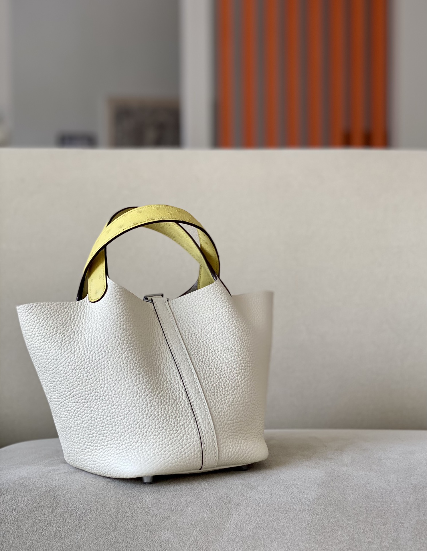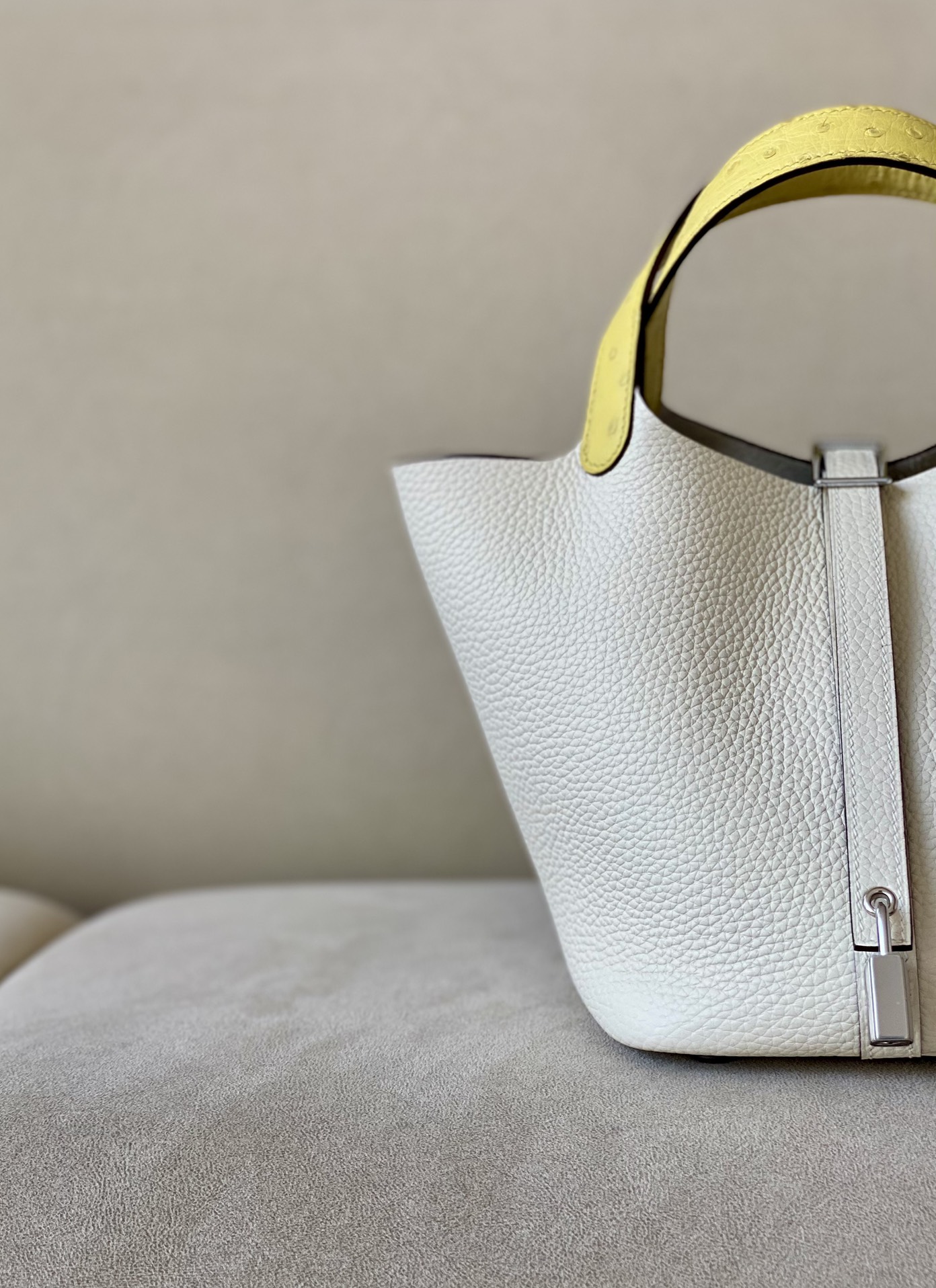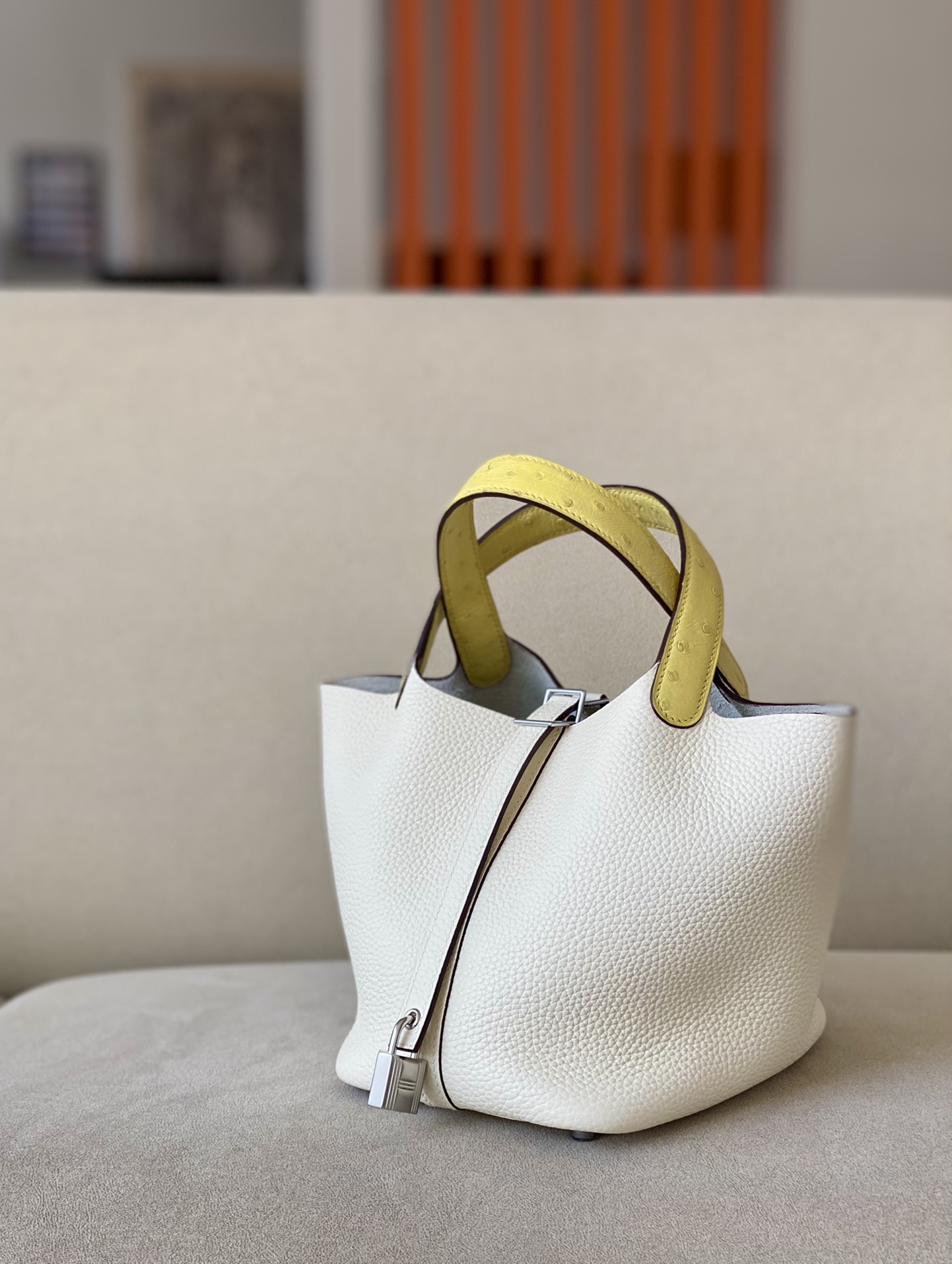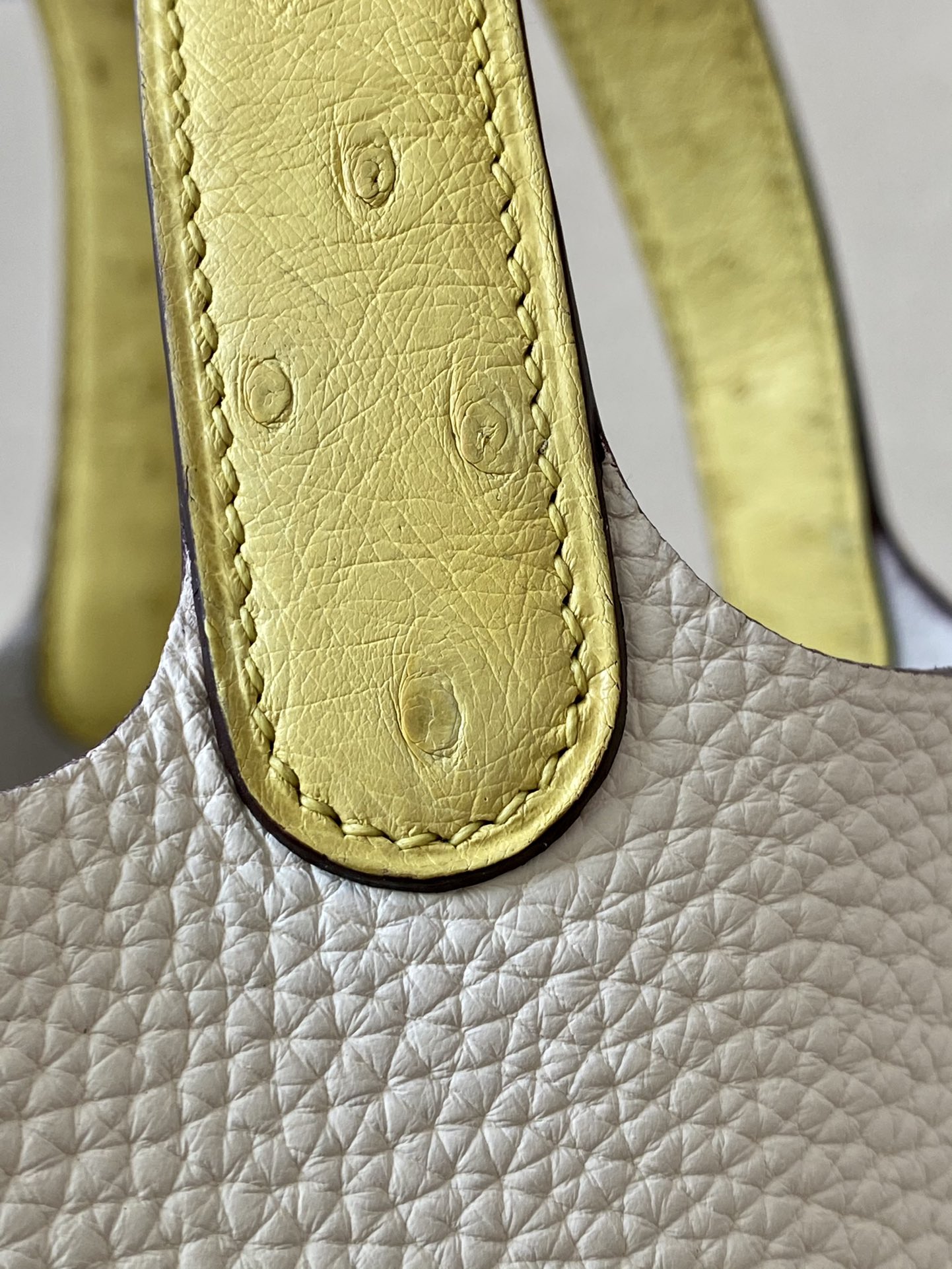 Picotin Lock 18 Clemence and Ostrich Biscuit(4B) and Vanille(Y1) Palladium Hardware