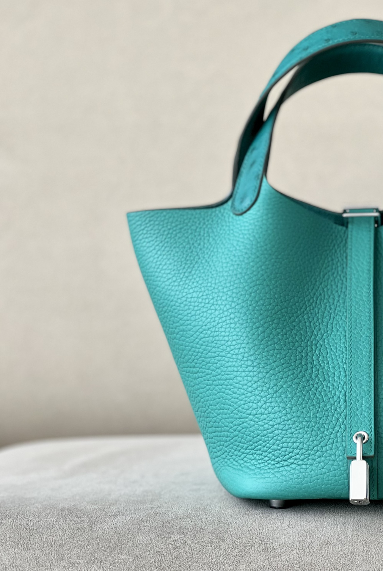 Picotin Lock 18 Clemence and Ostrich Biscuit(4B) and Vanille(Y1) Palladium Hardware