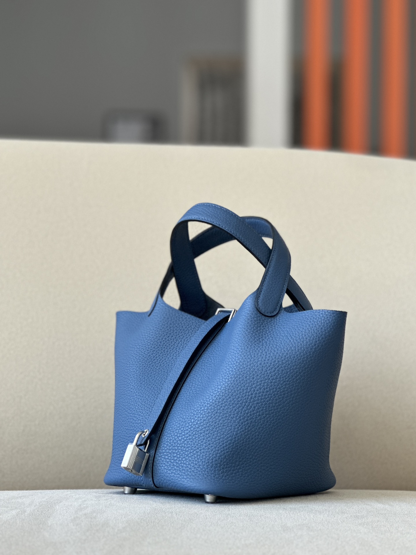 Picotin Lock 18 Clemence Blue Zellige(I7) Gold Hardware