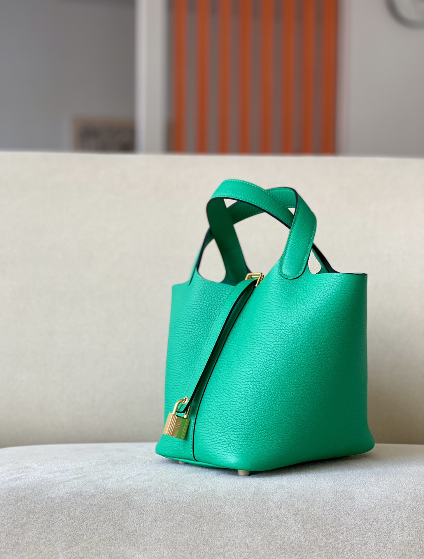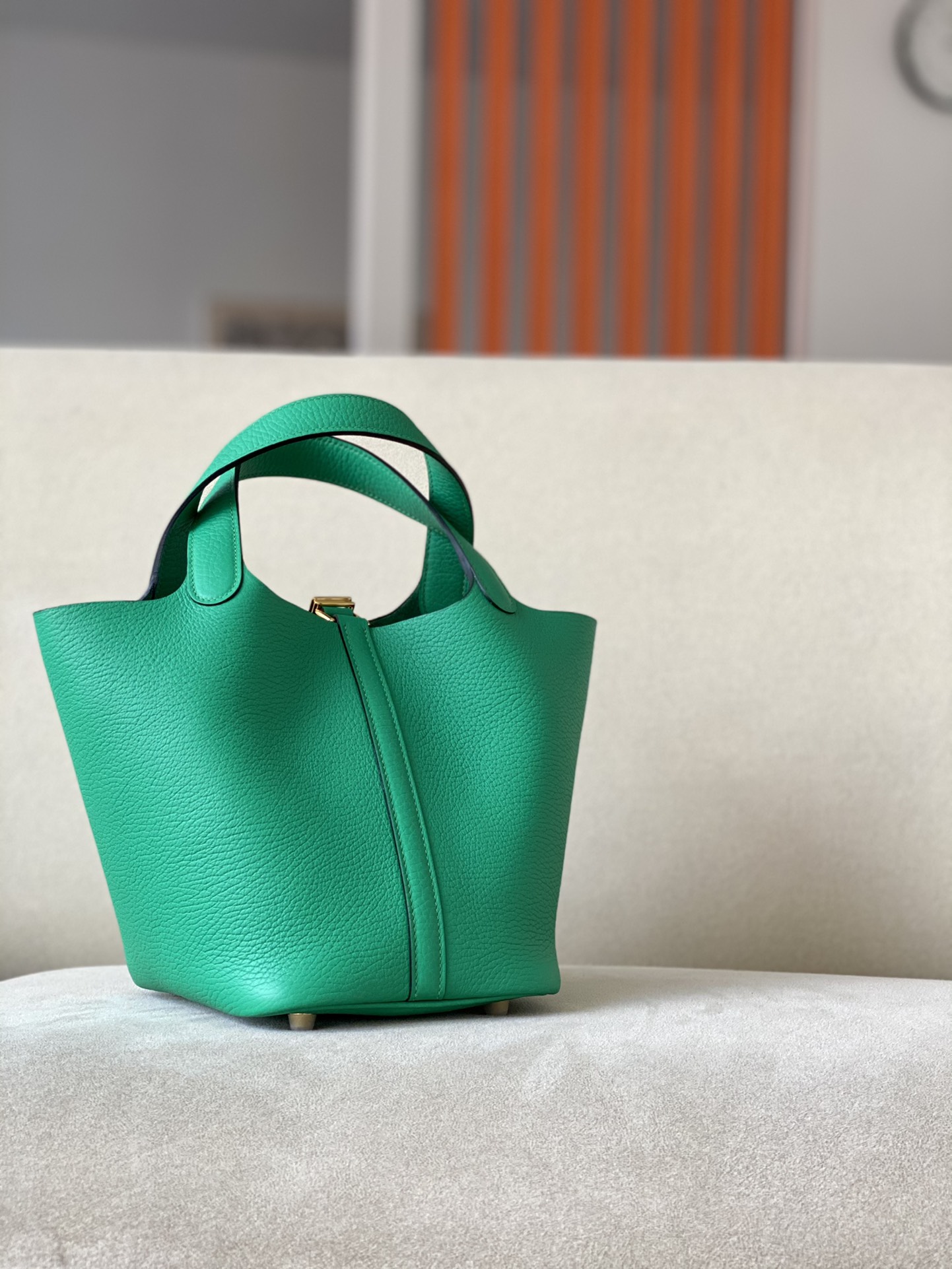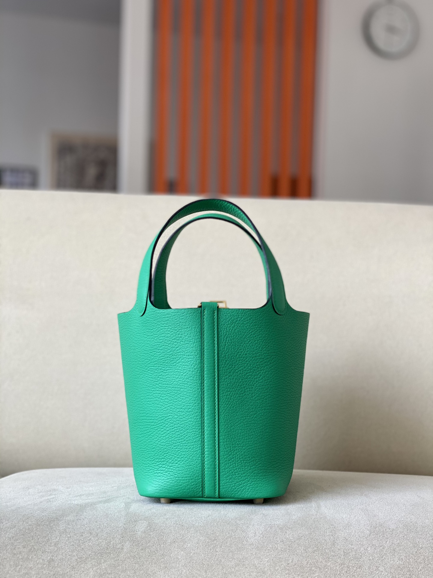 Picotin Lock 18 Clemence Vert Bronze(60) Gold Hardware