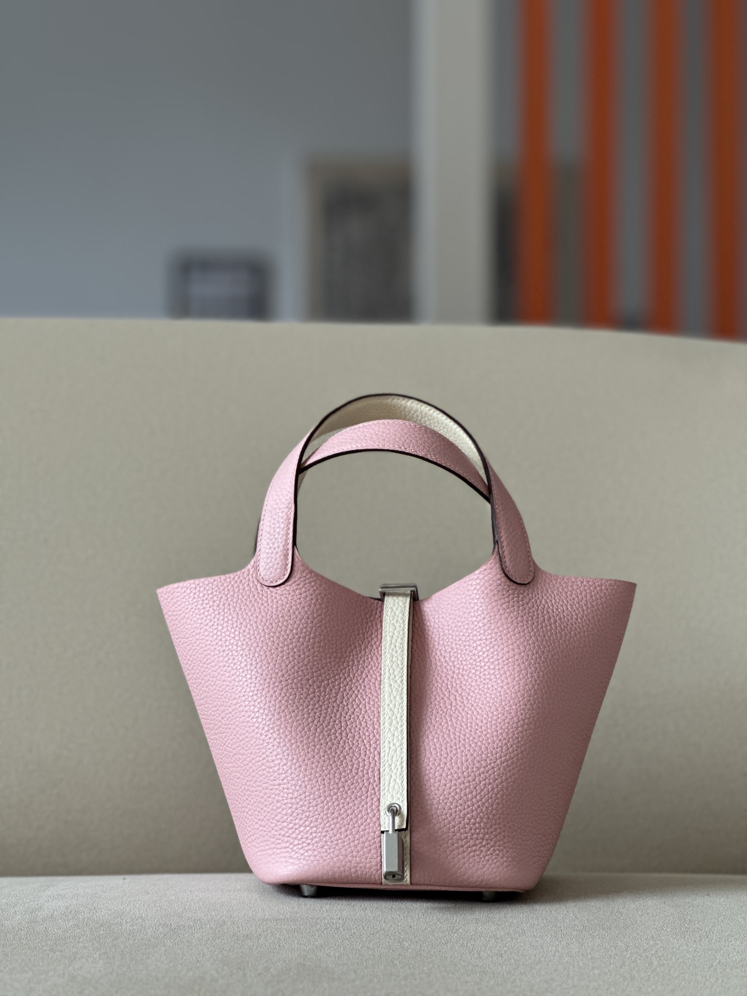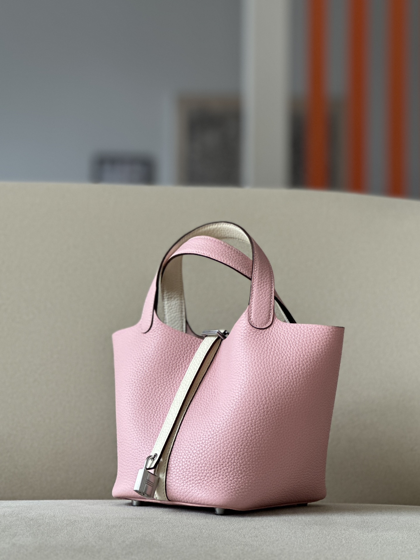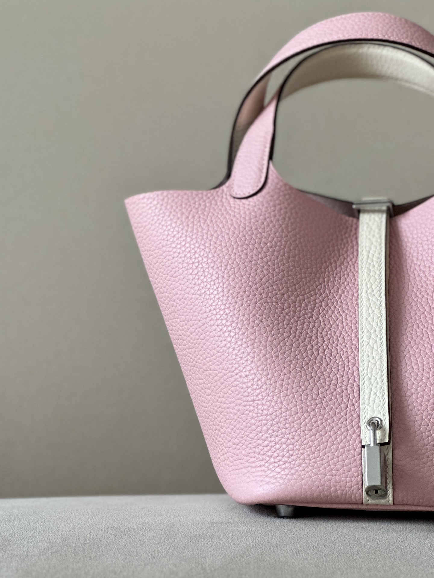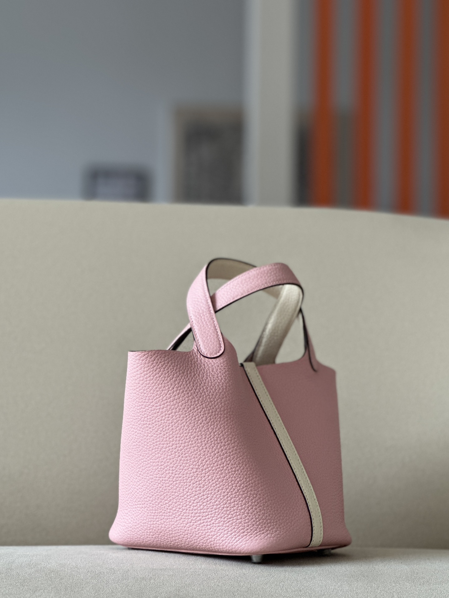 Picotin Lock HSS 18 Clemence Gris Perle(80) and Rose eLipstick(U5) Palladium Hardware