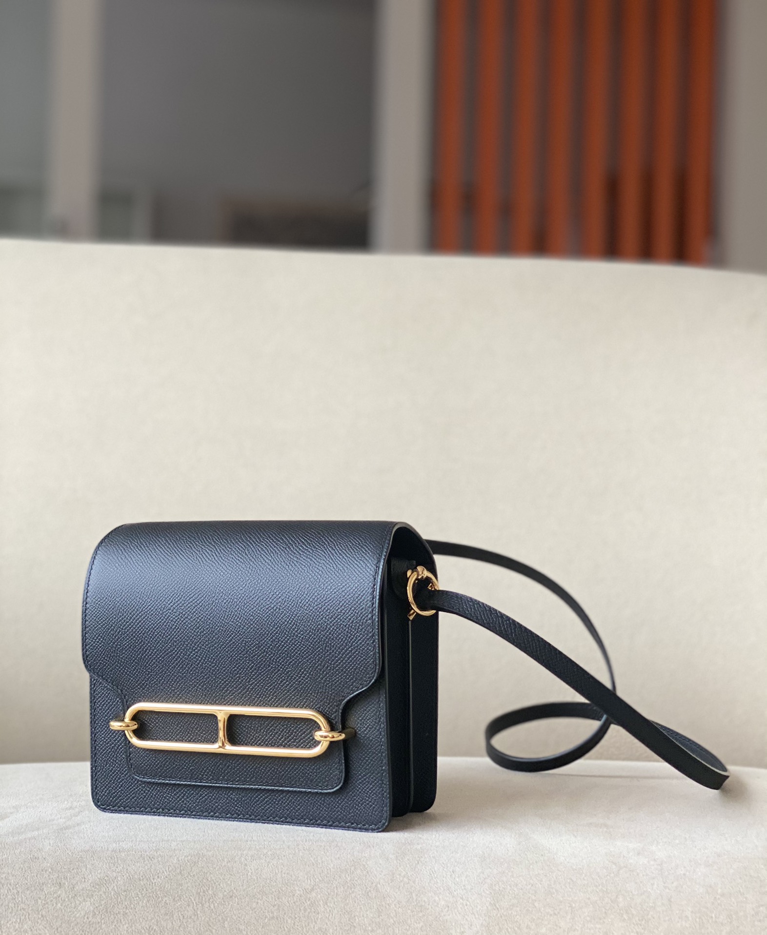 Includes ribbon, care booklet, dust bag, paper bag and box.
