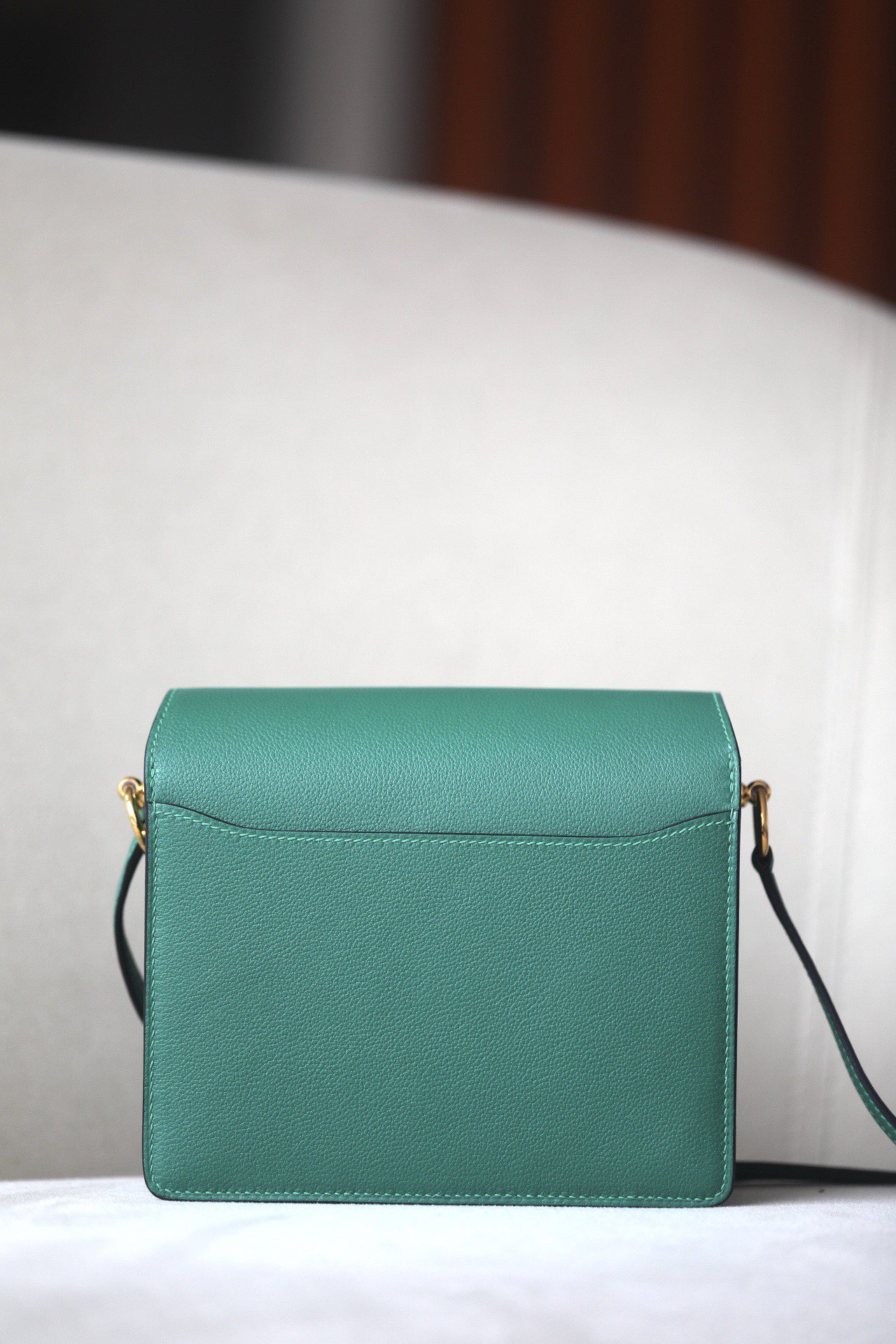 Includes ribbon, care booklet, dust bag, paper bag and box.
