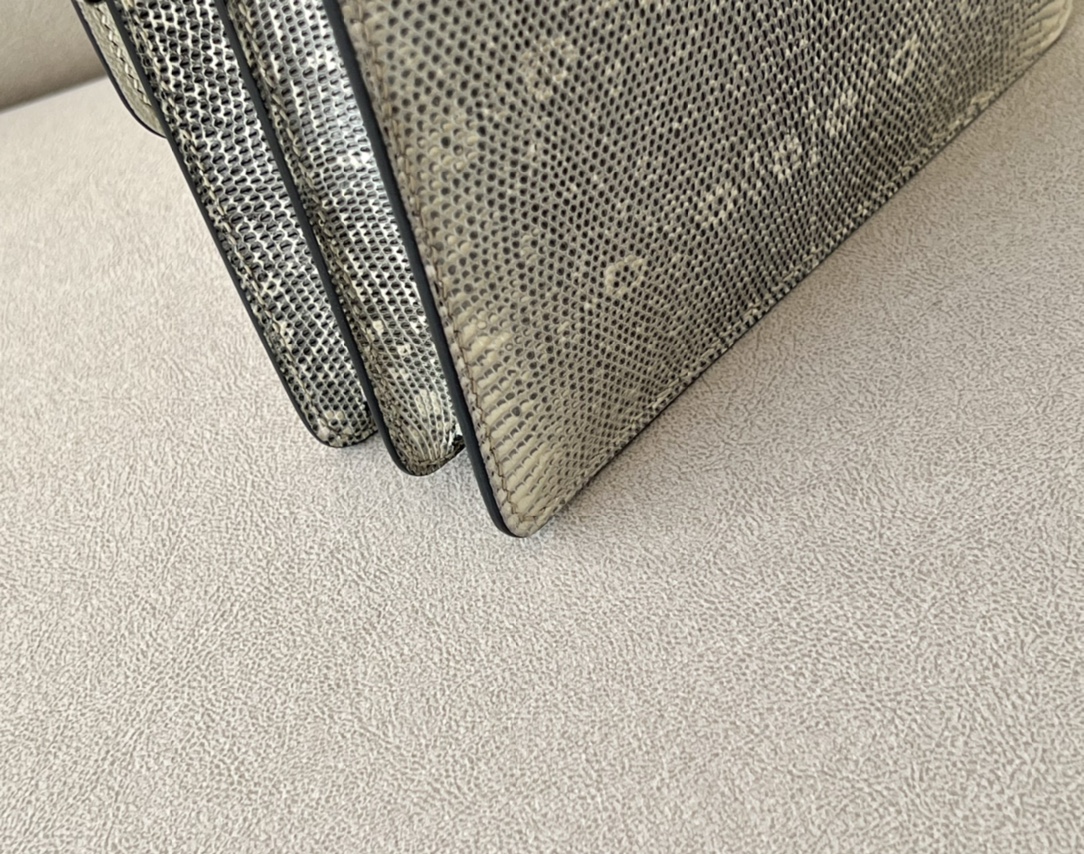 Includes ribbon, care booklet, dust bag, paper bag and box.
